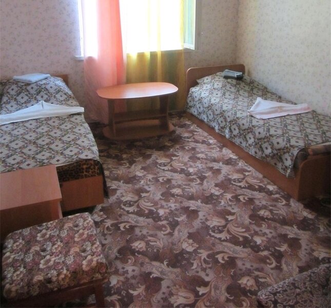 Поездом до ж/д вокзала г. Керчь, далее на междугороднем автобусе до автостанции г. Щелкино, далее на такси или пройти 1,5 км до отеля.