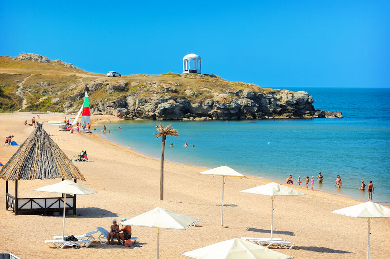На побережье Азовского моря, в туристическом городке Щелкино расположена современная база отдыха «Рига».