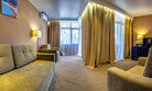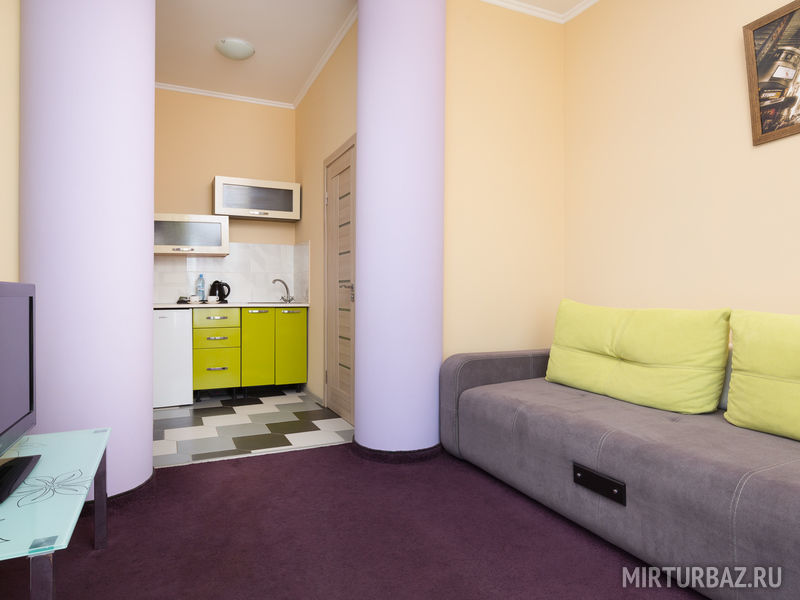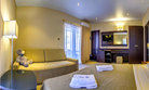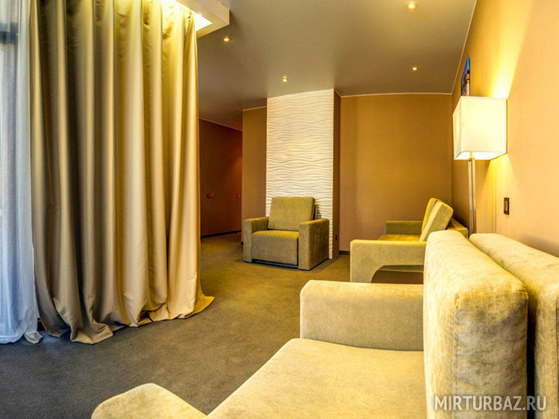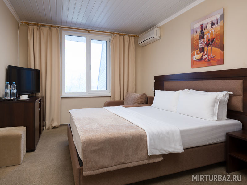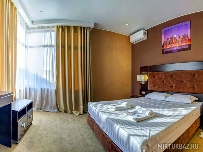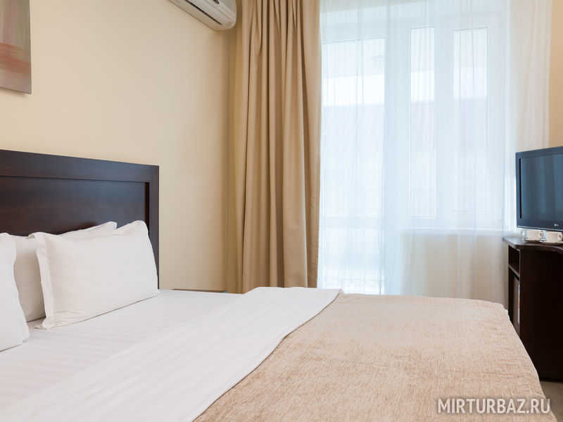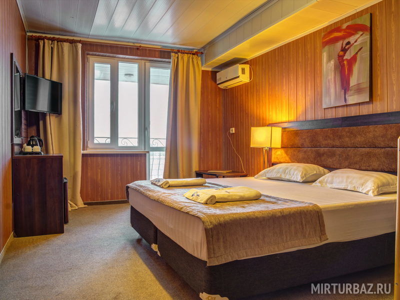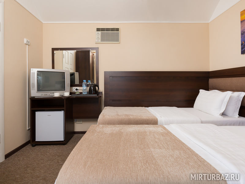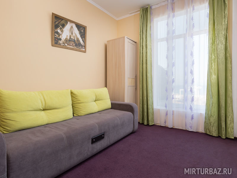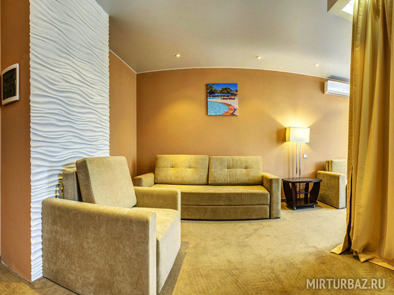 Номер Улучшенный комфорт двухкомнатный «Морской» - это красота, удобство, уют и комфорт за умеренную стоимость. В комнате имеется просторная двуспальная кровать, раскладной диван, телевизор со спутниковым телевидением, большое зеркало, тумбочки, вместительный шкаф, кондиционер и холодильник. Ванная комната укомплектована новым гидробоксом, имеется раковина, зеркало, отдельный туалет, а также все необходимые косметические принадлежности – полотенца, косметические средства. При необходимости вам в номер быстро доставят раскладной диван. А любителям активного отдыха и просто тем, кому нравится проводить побольше времени в кристально чистой воде – советуем забронировать номер у бассейна.