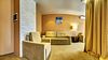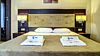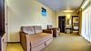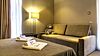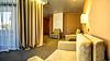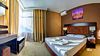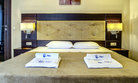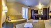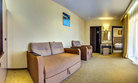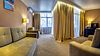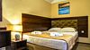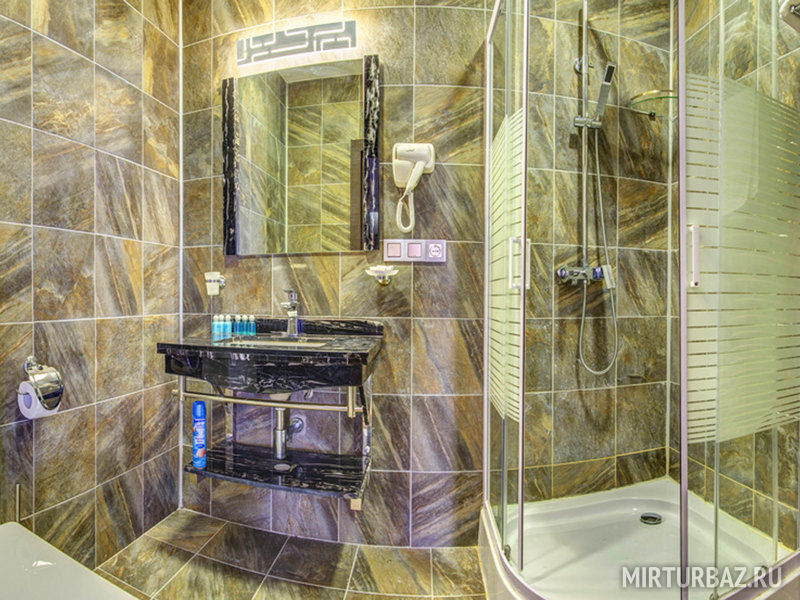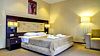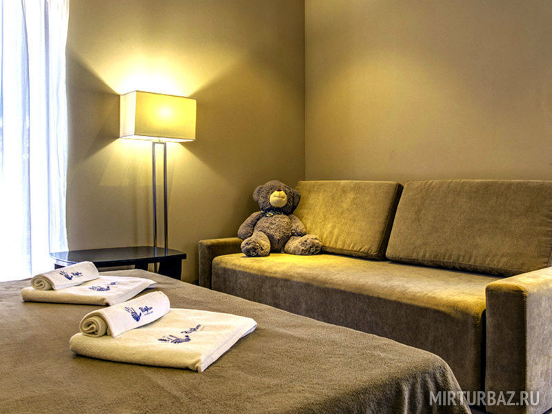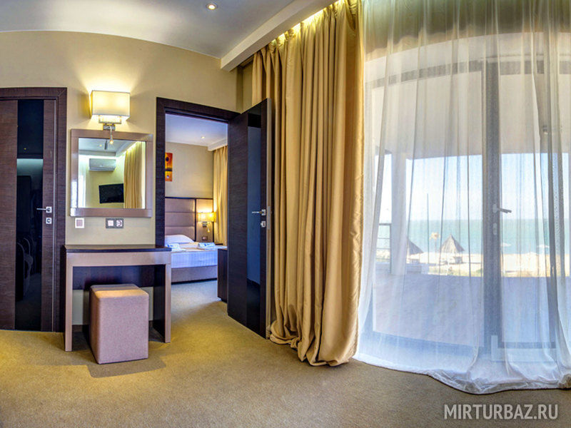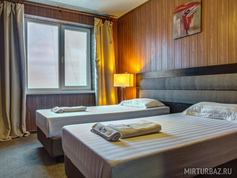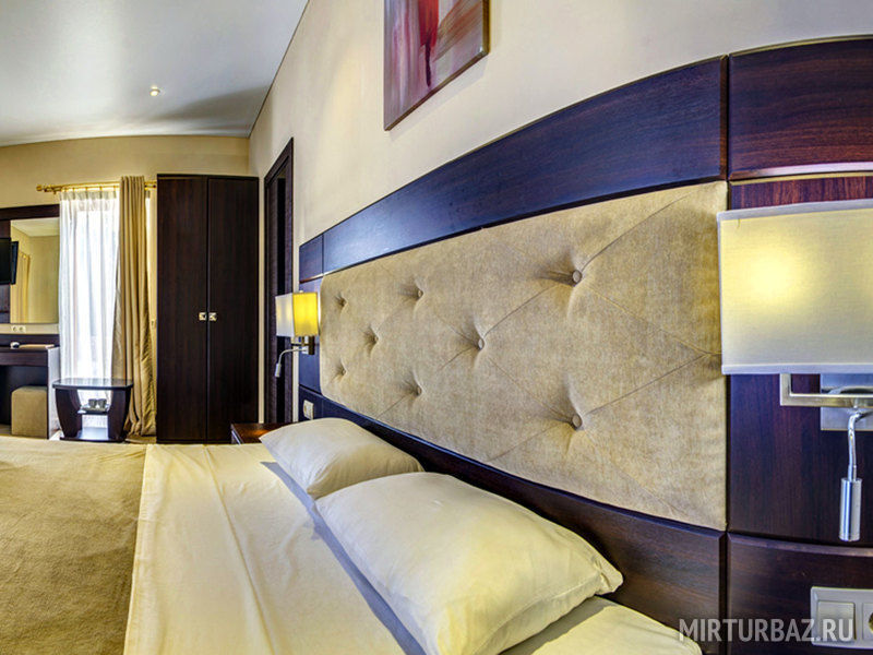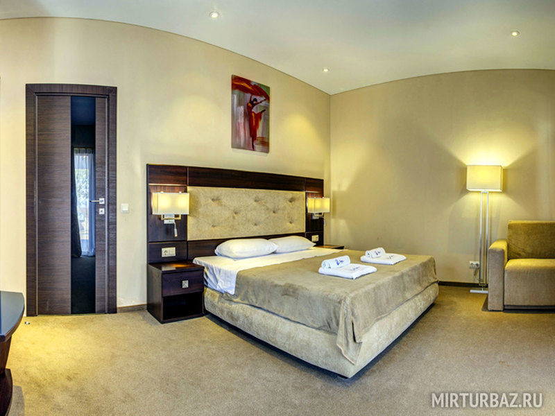В номере есть большая двуспальная кровать в отдельной комнате, а во второй – две односпальные. Наличие холодильника, телевизора, кондиционера, шкафа, тумбочек, столика и прочих предметов, обеспечивает уютное и приятное времяпрепровождение. В отдельной ванной комнате душ, туалет, раковина, зеркало, мягкие полотенца, а также все необходимые косметические принадлежности. По желанию отдыхающих в номер могут доставить раскладной диван или детскую кроватку.