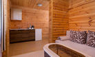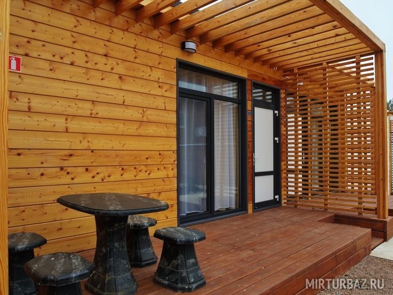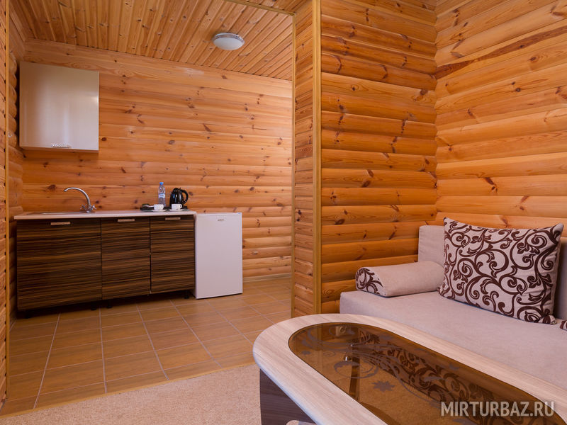 Уютные виллы, стоящие на берегу Азовского моря – блаженное место для отдыха. Здесь нет ничего, кроме безграничного удовольствия и наслаждения. Умиротворенную тишину нарушает только шум прибоя, мягко окутывающего золотистый песок чистейшего пляжа. Виллы в альпийском стиле – вариант для тех, кто жаждет окунуться в пучину роскоши и элегантности. Домики в альпийском стиле могут с легкостью разместить до 7 человек, благодаря тому, что они двухэтажные. Обе постройки выдержаны в очень уютном стиле – в отделке номера преобладает натуральное дерево. Перед виллой вы увидите красивую большую террасу, полностью заплетенную зеленью, что создает особую атмосферу уединения. На первом этаже находится санузел, компактная кухня, а также две просторные комнаты со всеми удобствами. Стильная спальня с двуспальной кроватью в одной, и удобный диван во второй комнате. Поднимаясь по лестнице, вы попадаете на второй этаж, где находится просторная комната с мансардной крышей, отдельный санузел и балкон, с которого открывается великолепный вид. Также, на втором этаже имеется маленькая комнатка с односпальной кроватью – отличное место для ребенка.
