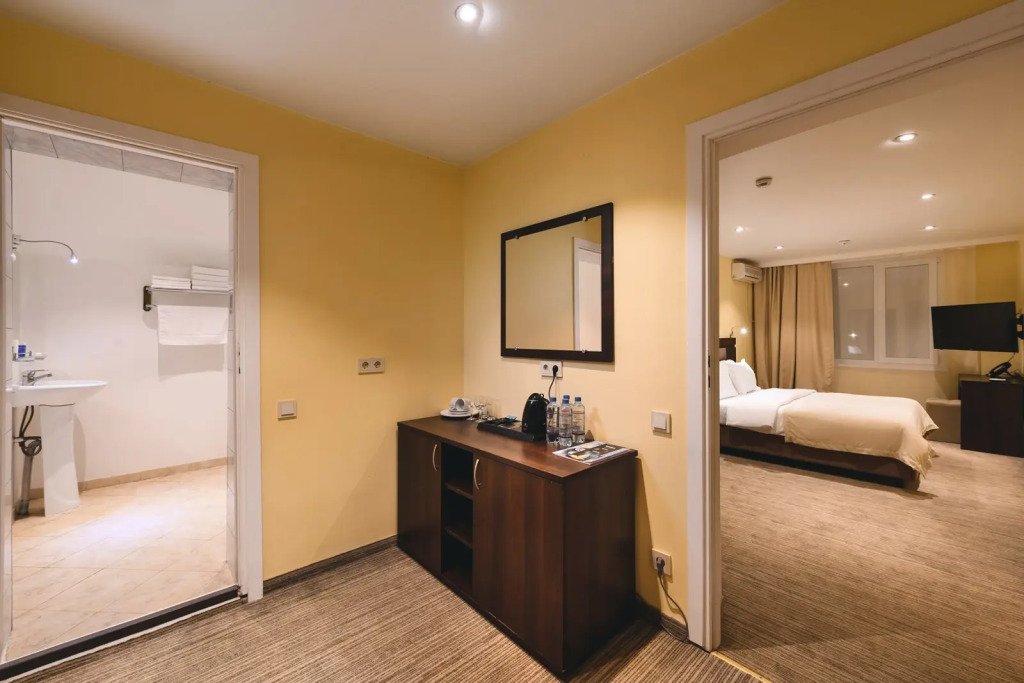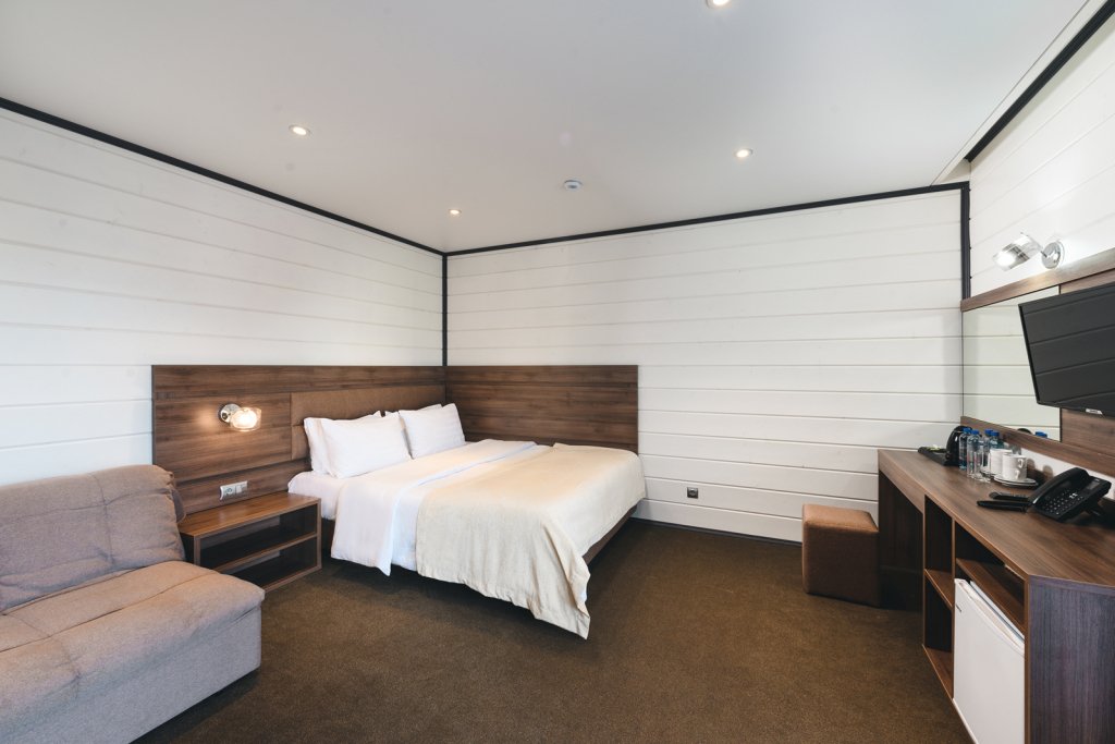 В номере вас будут ждать телевизор. Оснащение зависит от выбранной категории номера.