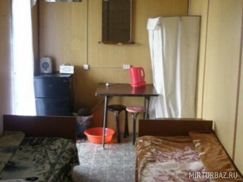 В домике: четыре односпальных кровати, постельное белье и постельные принадлежности, стол, стулья, тумбочка, зеркало, газовая печь, холодильник, чайник. Санузел на улице.