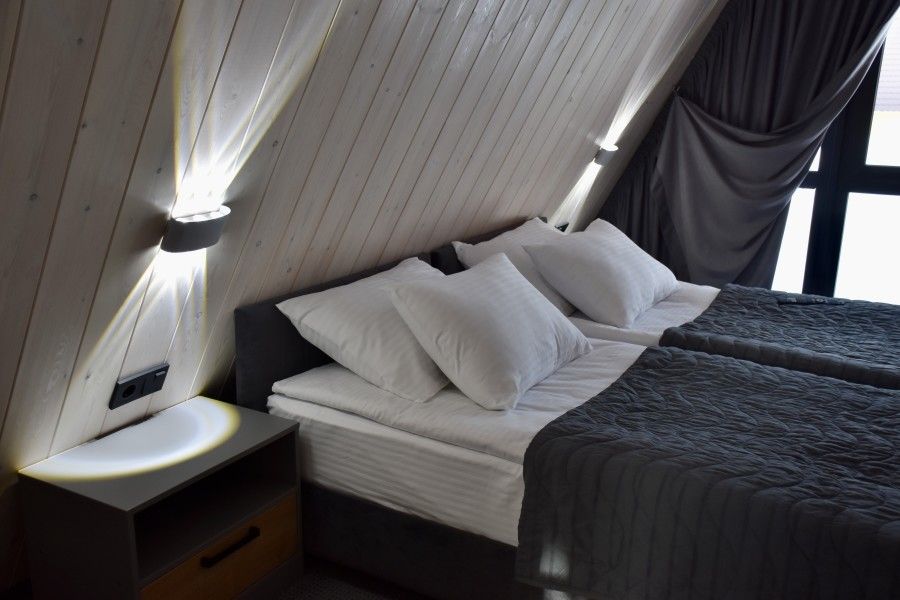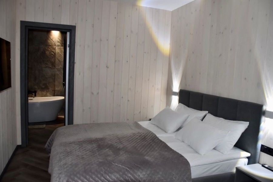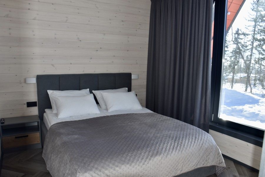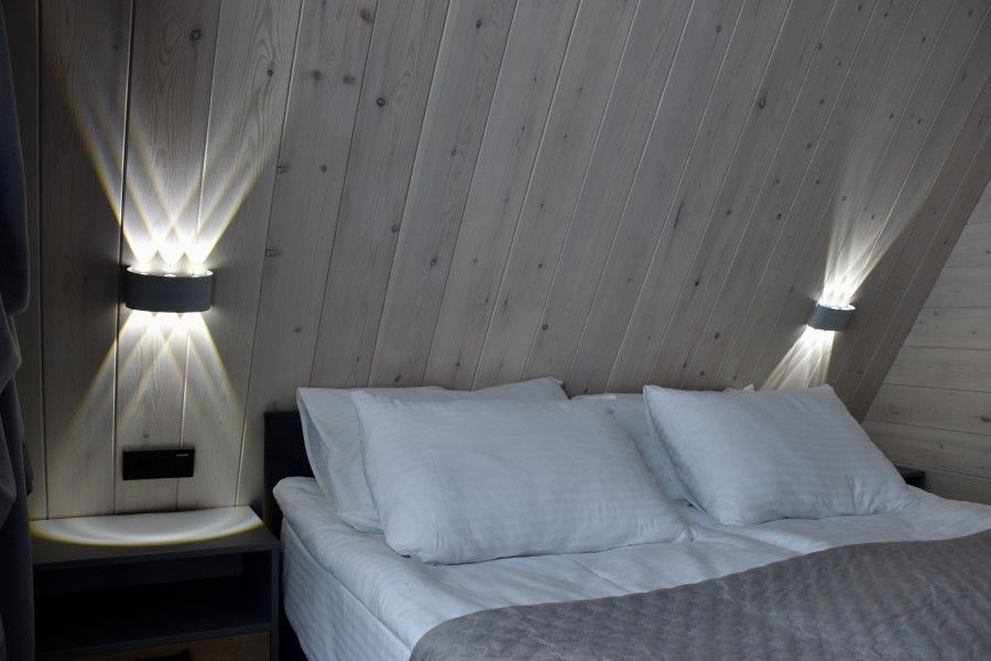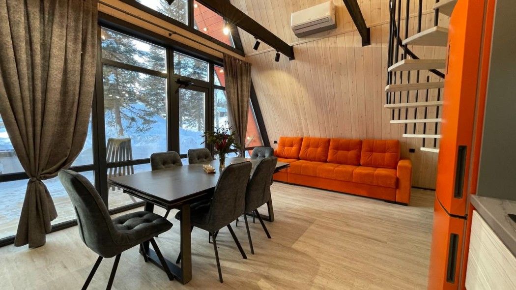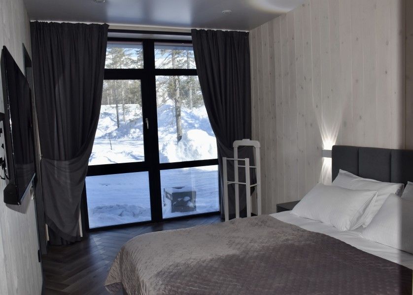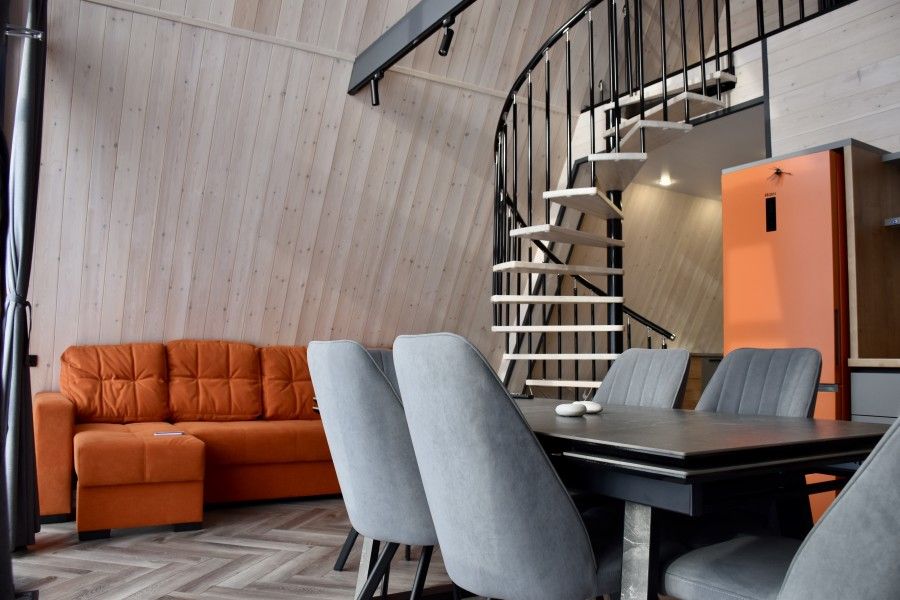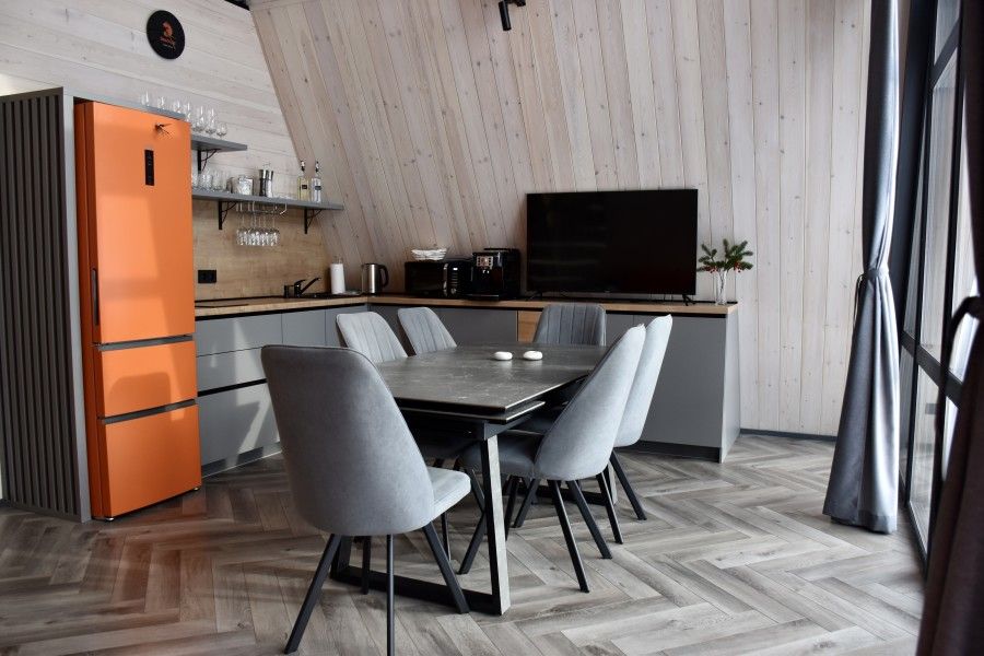 Вам будут доступны уютные современные шале с большими панорамными окнами, высокими потолками, скоростным Wi-Fi и собственными террасами с мангалом.