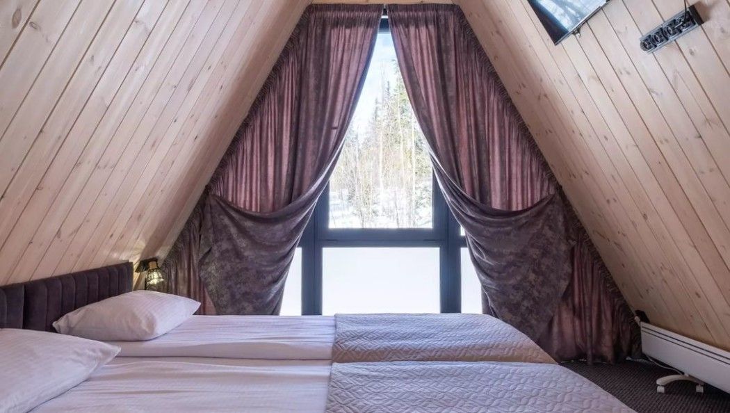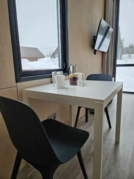 Небольшой домик площадью 25 кв м с панорамными окнами. Подходит для размещения 4 человек.