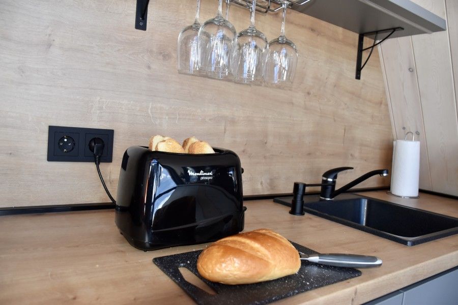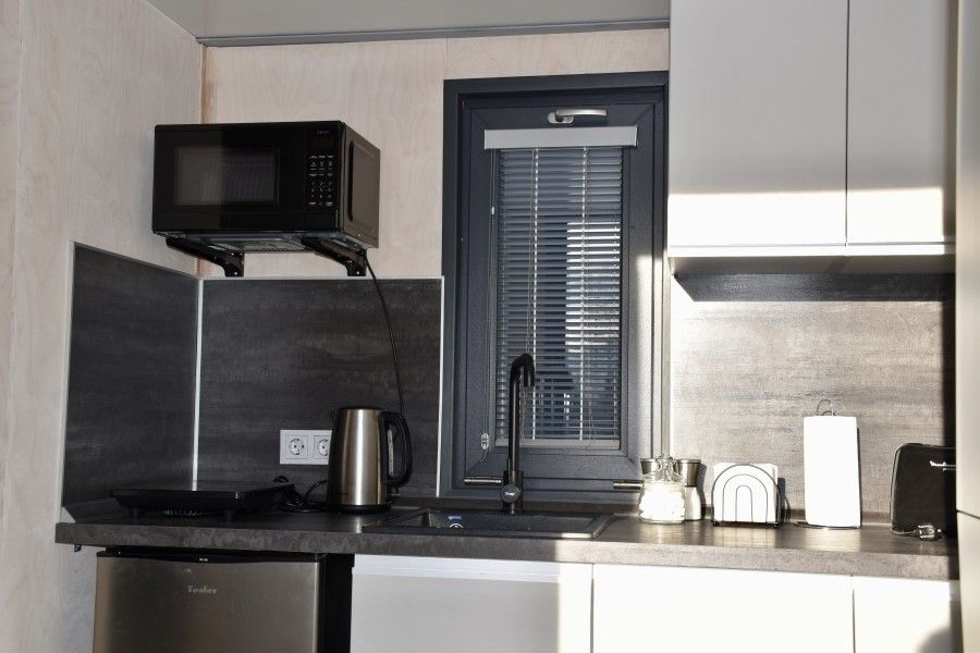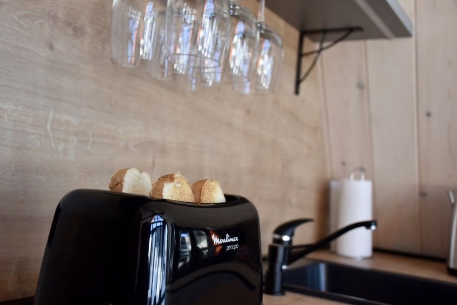 - кухонный уголок: есть вся необходимая посуда и техника (чайник, гейзерная кофеварка, тостер, электрическая плита, микроволновая печь, холодильник);