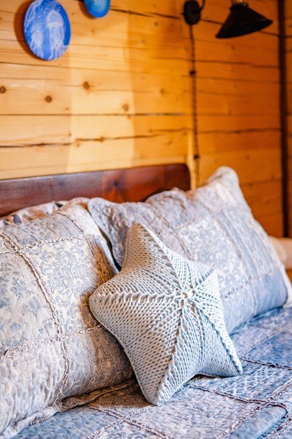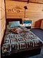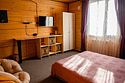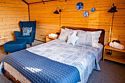 Деревянное Шале (2 этажа, 200 кв.м.): прихожая; отдельное помещение с вентиляцией и сушильным шкафом для одежды и снаряжения; большая гостиная с кухонной, обеденной зонами и зоной для отдыха; 3 санузла с душевыми; 6 спален: Спальня 1 – две односпальные кровати; Спальня 2 – одна двуспальная кровать; Спальня 3 – одна двуспальная кровать; Спальня 4 – одна двуспальная кровать; Спальня 5 – одна двуспальная кровать, одна односпальная кровать; Спальня 6 – одна двуспальная кровать, одна односпальная кровать.