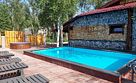 В летнее время гости могут насладиться открытым бассейном с многоцветной подсветкой, где можно расслабиться на шезлонгах или освежиться в воде, вдыхая аромат лета. Для любителей кулинарии предусмотрена зона для отдыха с печным комплексом и садовой мебелью, идеально подходящая для приготовления аппетитных блюд на свежем воздухе — от жарки мяса на мангале до создания ароматных угощений в казане.