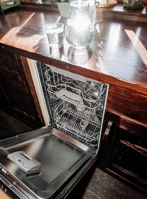 В доме: посудомоечная и стиральная машины, фены, телевизоры, кухонная и бытовая техника, полный набор посуды, полотенца и постельное белье, детская кроватка/стульчик.