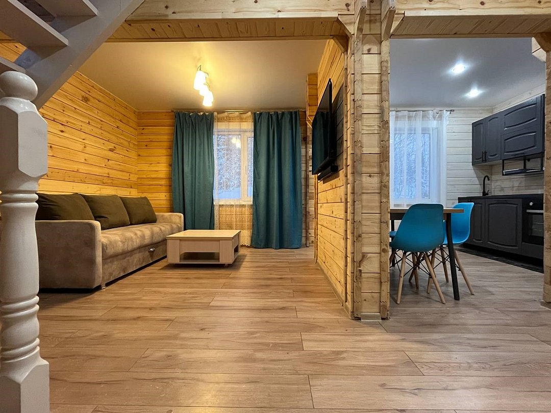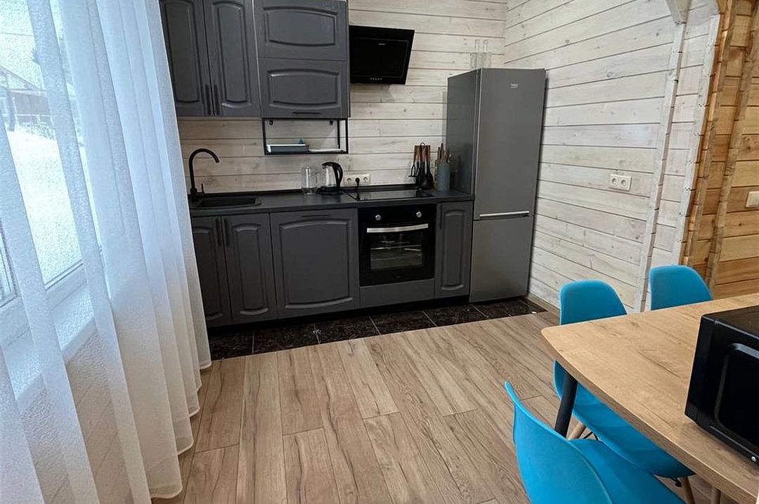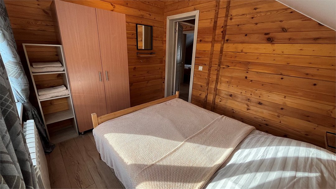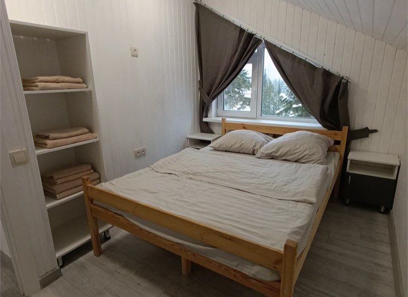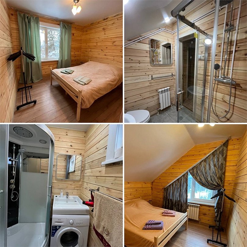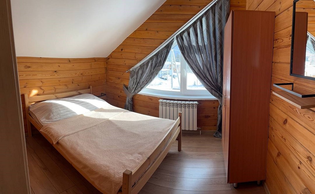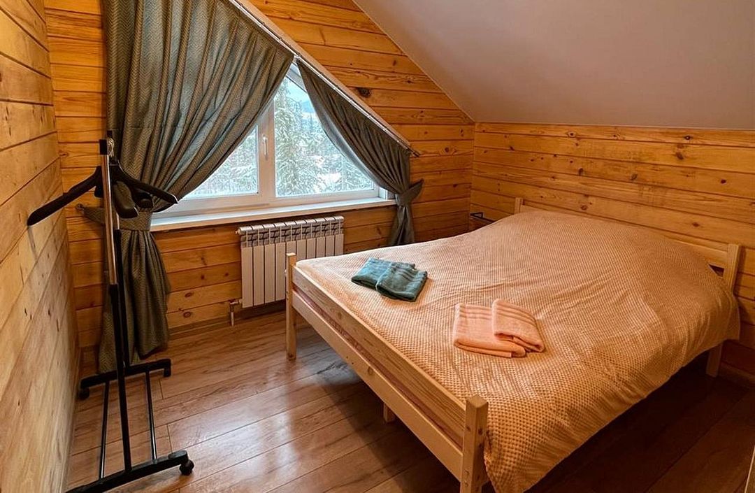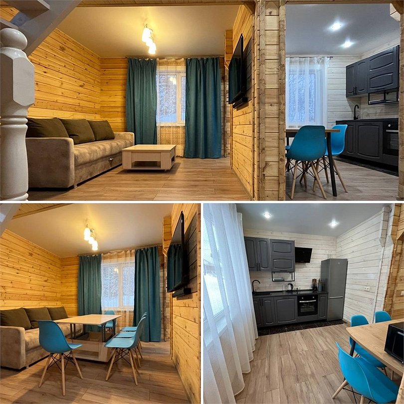 Новый 2-этажный коттеджа. Для комфортного проживания коттеджи рассчитаны на 10 чел., есть 2 доп. места (максимум 12 человек). 1 этаж: кухня совмещённая с залом, спальная комната с 2х ярусной кроватью, санузел с душевой кабиной, прихожая где можно оставить лыжную экипировку. 2 этаж: 4 мансардные спальные комнаты с 2х спальными кроватями и санузел с душевой кабиной. В доме есть: холодильник, индукционная плита с духовым шкафом, стиральная машина, посудомоечная машина, микроволновая печь, чайник, телевизор, Саундбар колонка, Wi-Fi, фен, четыре 2х-спальные кровати, одна 2х ярусная, вешала для одежды в каждой комнате, диван раскладной, стол раскладной в зале, стол раскладной в кухне, детский стульчик (по запросу), посуда, постельное белье, полотенца, мангал, решётка, казан (по запросу).Услуги и удобства