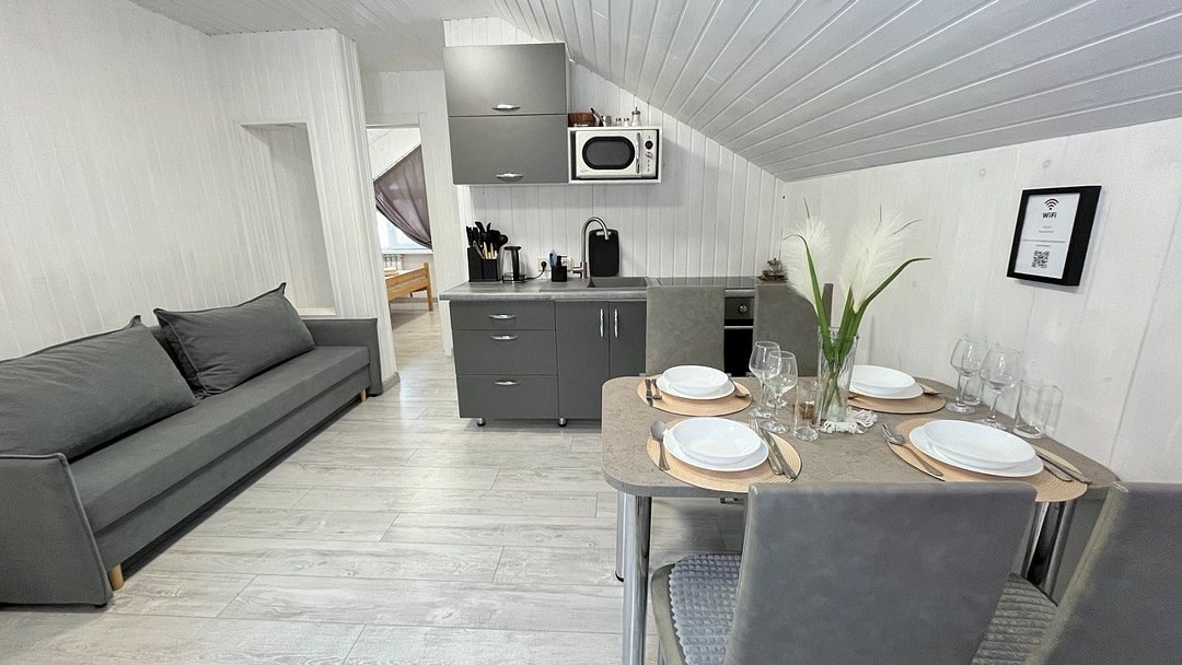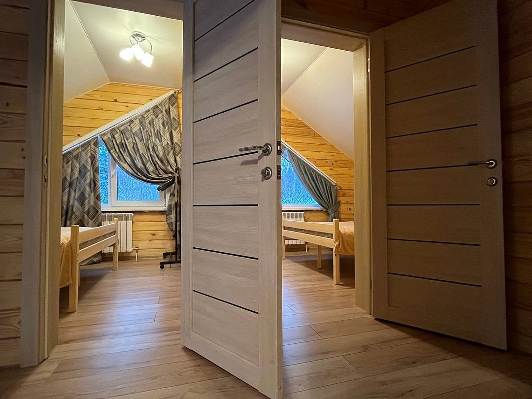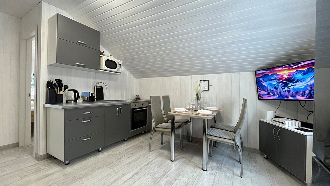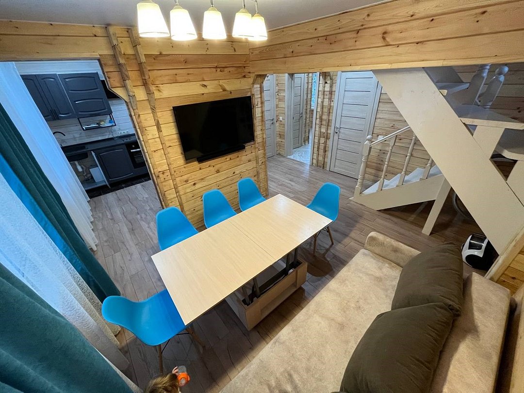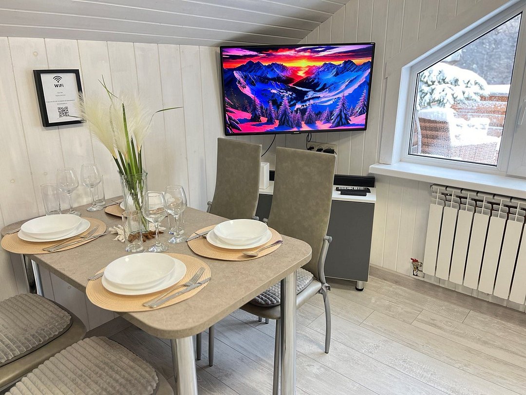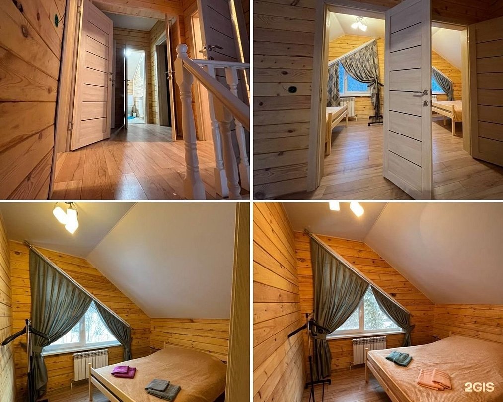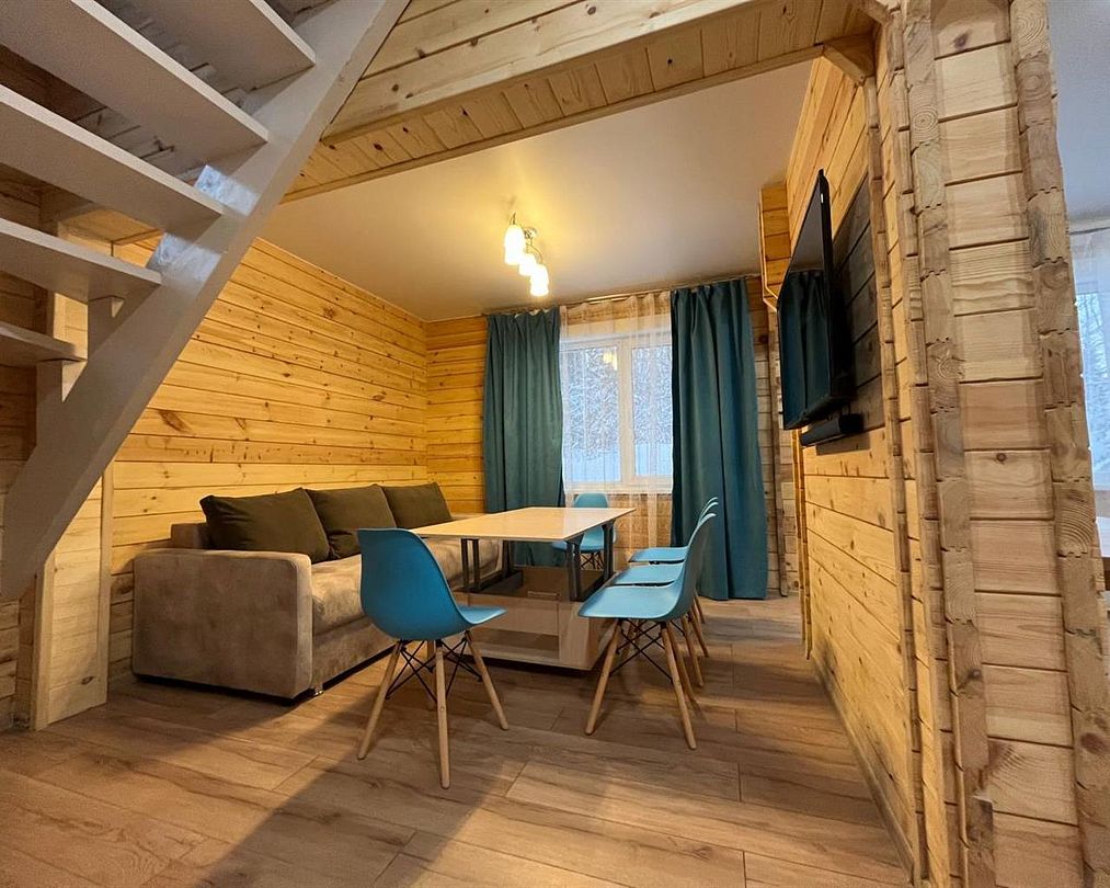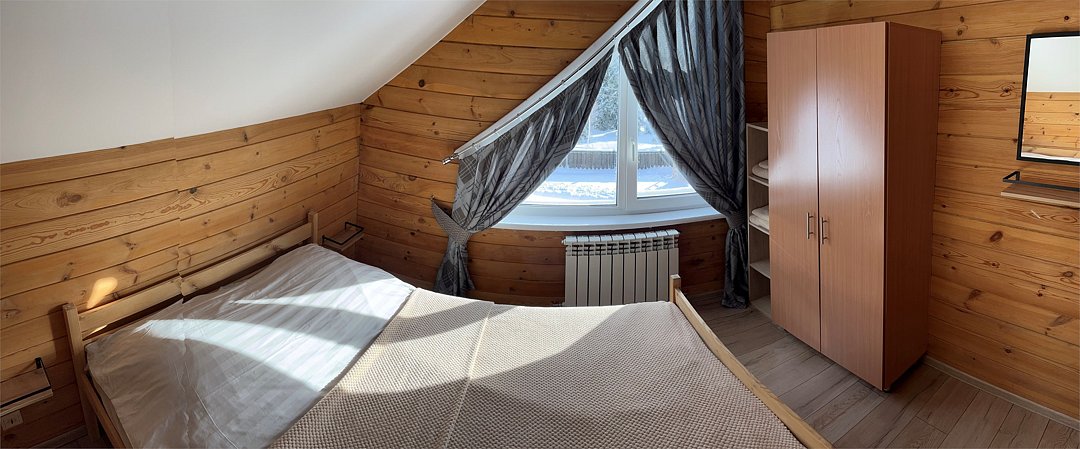 Новый 2-этажный коттеджа. Для комфортного проживания коттеджи рассчитаны на 10 чел., есть 2 доп. места (максимум 12 человек). 1 этаж: кухня совмещённая с залом, спальная комната с 2х ярусной кроватью, санузел с душевой кабиной, прихожая где можно оставить лыжную экипировку. 2 этаж: 4 мансардные спальные комнаты с 2х спальными кроватями и санузел с душевой кабиной. В доме есть: холодильник, индукционная плита с духовым шкафом, стиральная машина, посудомоечная машина, микроволновая печь, чайник, телевизор, Саундбар колонка, Wi-Fi, фен, четыре 2х-спальные кровати, одна 2х ярусная, вешала для одежды в каждой комнате, диван раскладной, стол раскладной в зале, стол раскладной в кухне, детский стульчик (по запросу), посуда, постельное белье, полотенца, мангал, решётка, казан (по запросу).Услуги и удобства