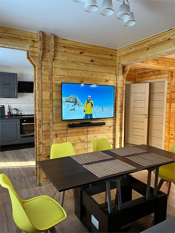Новый 2-этажный коттедж. Для комфортного проживания коттедж рассчитан на 10 чел., есть 2 доп. места (максимум 12 человек). 1 этаж: кухня совмещённая с залом, спальная комната с 2х ярусной кроватью, санузел с душевой кабиной, прихожая где можно оставить лыжную экипировку. 2 этаж: 4 мансардные спальные комнаты с 2х спальными кроватями и санузел с душевой кабиной. В доме есть: холодильник, индукционная плита с духовым шкафом, стиральная машина, посудомоечная машина, микроволновая печь, чайник, телевизор, Саундбар колонка, Wi-Fi, фен, четыре 2х-спальные кровати, одна 2х ярусная, вешала для одежды в каждой комнате, диван раскладной, стол раскладной в зале, стол раскладной в кухне, детский стульчик (по запросу), посуда, постельное белье, полотенца, мангал, решётка, казан (по запросу).Услуги и удобства