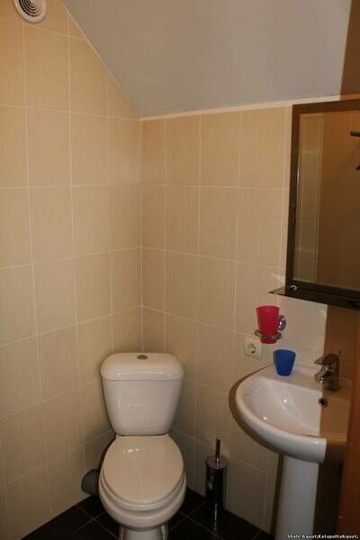 - полуэтаж - полностью оборудованная кухня для самостоятельного приготовления, обеденная зона, холодильник, прачечная (стир. машинка, гладильная доска), спутниковое ТВ, комната с диваном.