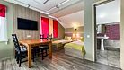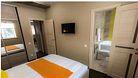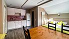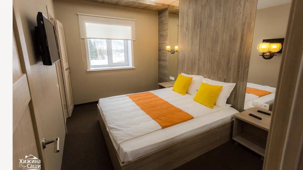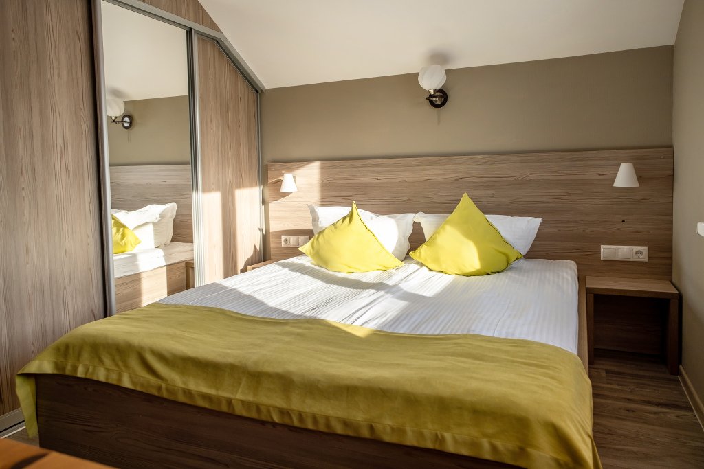 В двухместных номерах помимо кроватей с постельным бельём есть телевизор, шкаф, прикроватные тумбы, фен, санузел с душевой кабиной или с ванной. В корпусах с двухместными номерами расположены общие кухни, оборудованные бытовой техникой и посудой, на которых гости могут готовить самостоятельно.