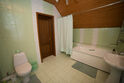 Коттедж имеет два этажа и может разместить до 10 человек. В распоряжении гостей имеются две отдельные спальни и уютная кухня-гостиная. В коттедже имеются две двуспальные кровати и три двуспальных дивана, что обеспечивает комфортный отдых для всех гостей после активного дня. На просторной кухне представлена необходимая бытовая техника, такая как холодильник, СВЧ-печь, варочная панель, чайник и вытяжка. Кроме того, имеются столовые приборы и набор посуды для приготовления пищи. В коттедже также есть три санузла, два из которых оснащены ваннами, а один - душевой кабиной. Кроме того, доступна стиральная машина.
