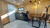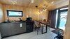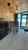 Кухонная зона оборудована холодильником, микроволновой печью, плитой, электрическим чайником и краном с питьевой водой. Имеется обеденный стол.