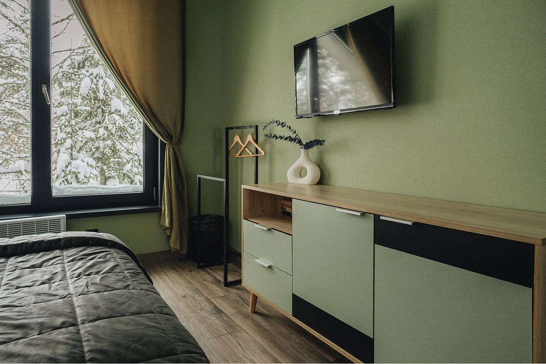 2-спальная кровать, ТВ, холодильник, кухонная зона со всем необходимым, теплые полы, фен с/у с душем.