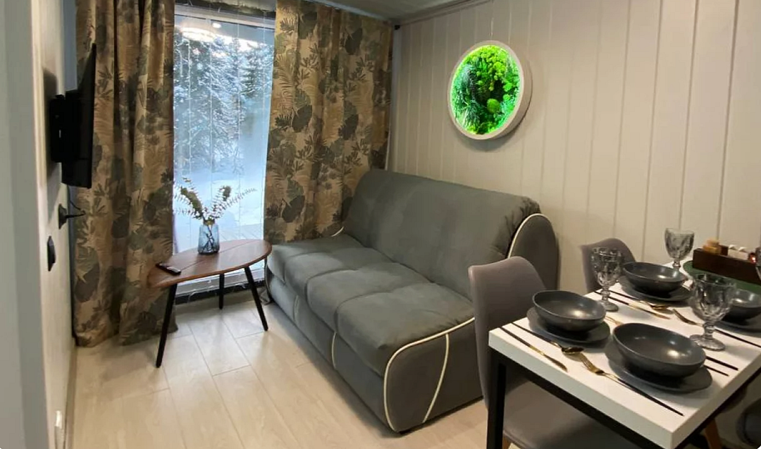 Небольшой и уютный домик на 4-ых гостей. Одна двухспальная кровать в закрываемой комнате и один раскладной двухспальный диван-кровать в общей зоне есть в наличии. Интересные дизайнерские решения и теплый пол по всему дому подарит вам ощущение уюта в любое время года!Услуги и удобства