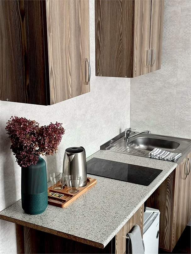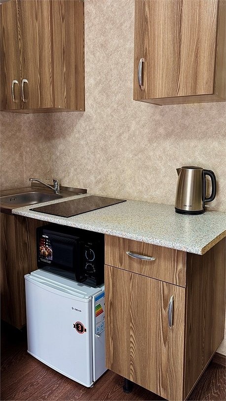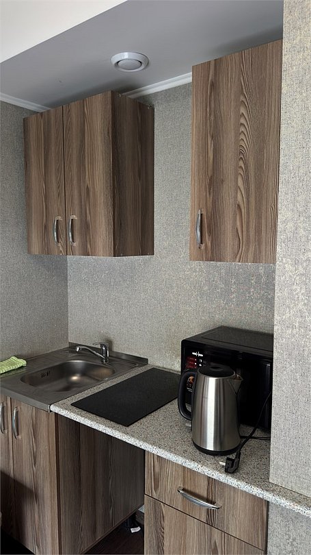 Однокомнатный номер: два двуспальных дивана, вешалки-крючки для верхней одежды, стеллаж, стол, кухонная зона (чайник, микроволновая печь, мини-холодильник, варочная панель, набор посуды и столовых принадлежностей). Санузел: душевая кабина, раковина, зеркало, фен, одноразовая косметика, унитазУслуги и удобства