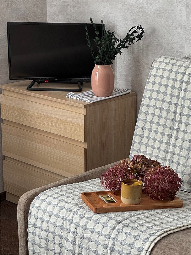 Wi-Fi, фен, плита для приготовления пищи, микроволновая печь, душевая кабина, банные полотенца, вешалки, кухня, набор посуды, чайник, унитаз, раковина, кухонная посуда, туалетные средства, мини-холодильник, два дивана-кровати, мыло, можно с питомцамиВ гостиничном номере