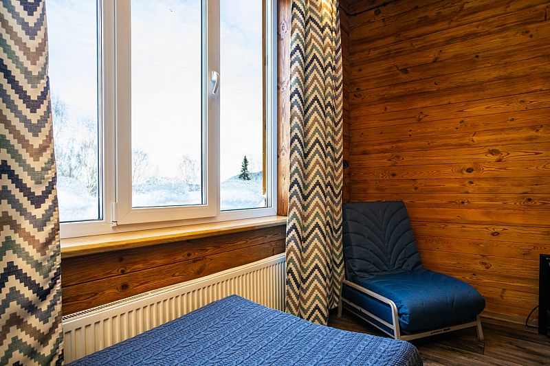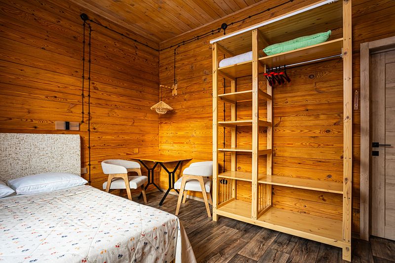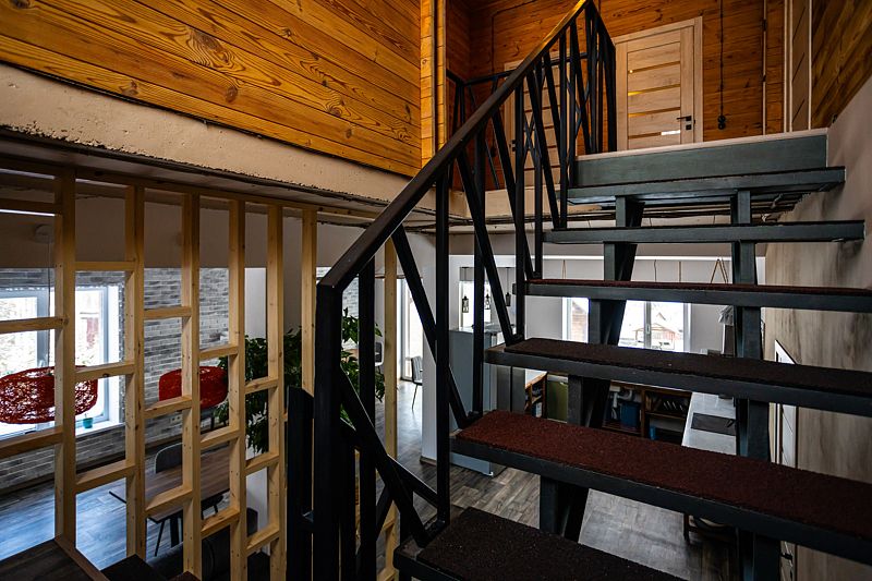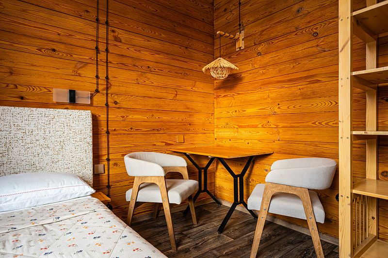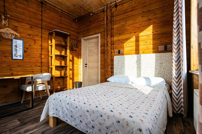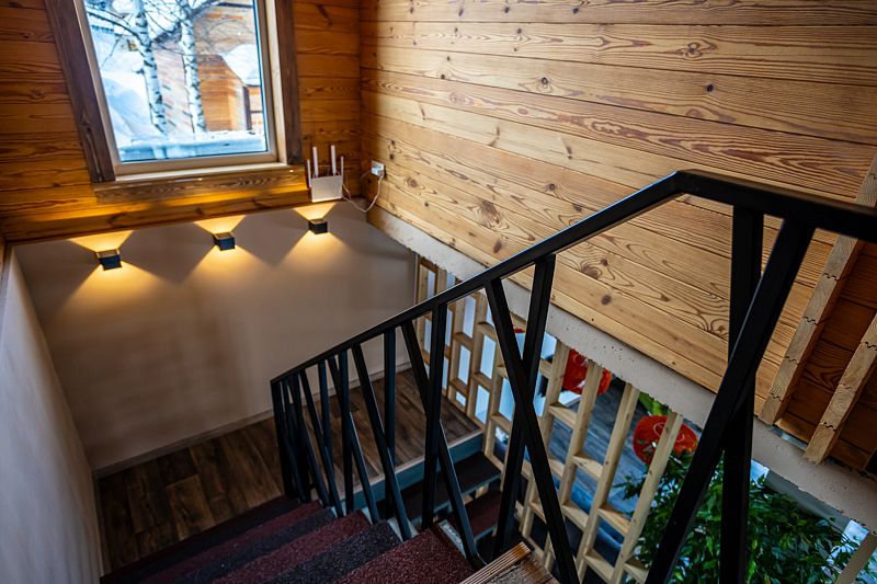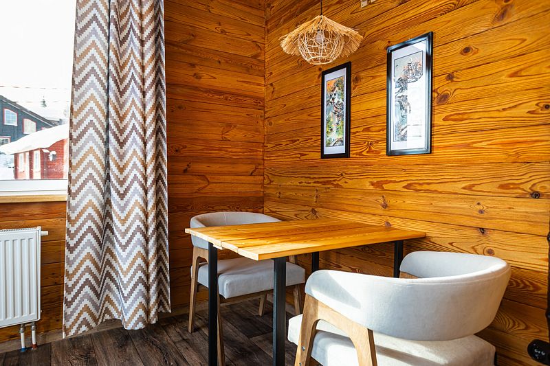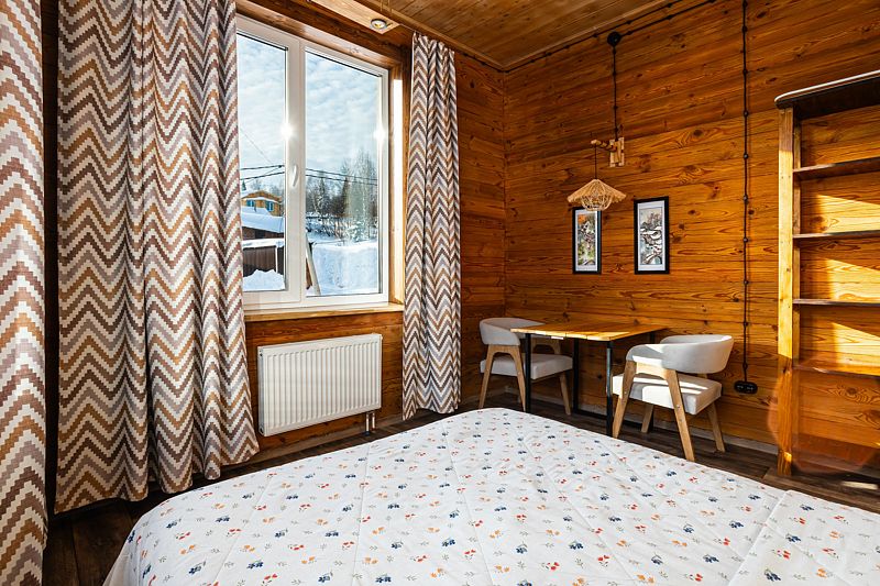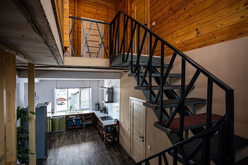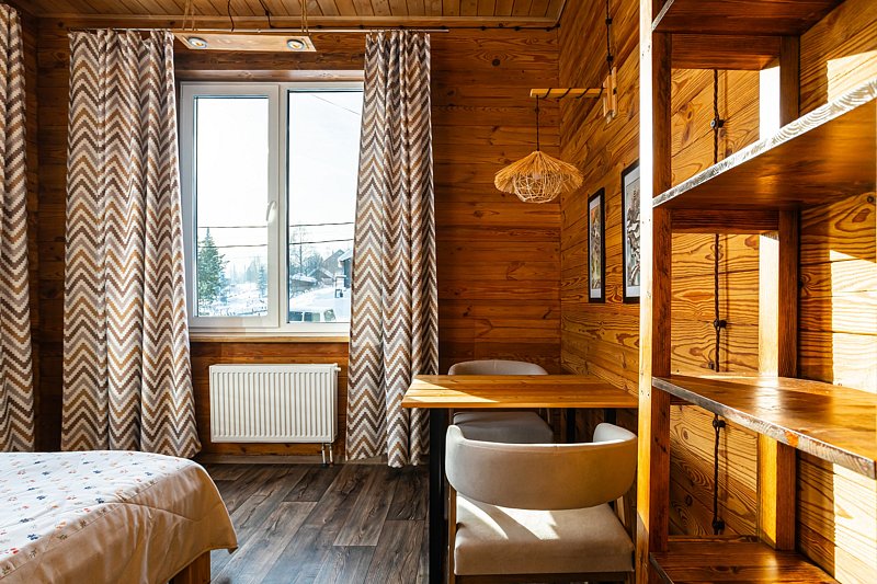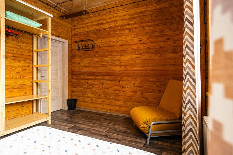«Рыжий пони» — это уютный и очень теплый дом с собственной системой отопления. Первый этаж и санузлы оснащены подогреваемыми полами, а горячая вода подаётся в любое время суток. Также на первом этаже расположены просторная гостиная и кухня, выполненные в студийном стиле площадью 48 кв.м.. Здесь же и отдельная изолированная комната, где проживают хозяева.