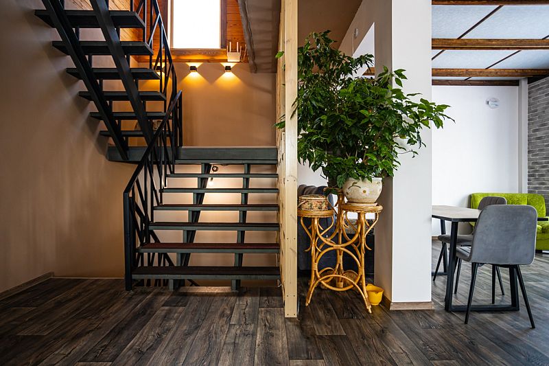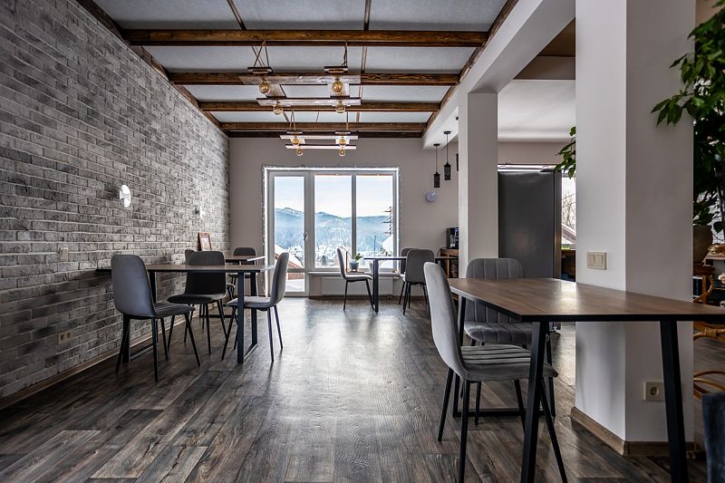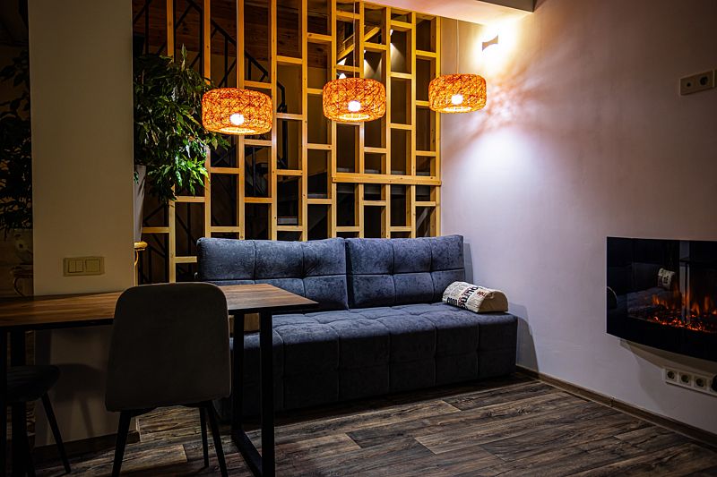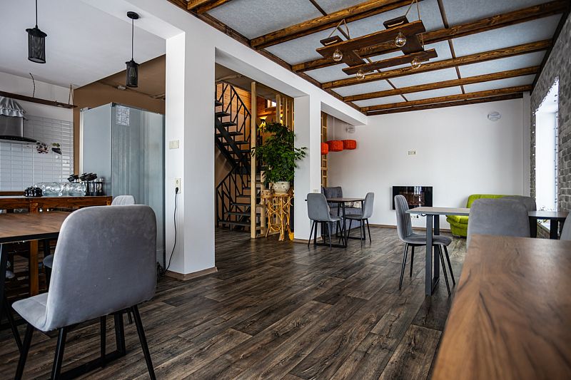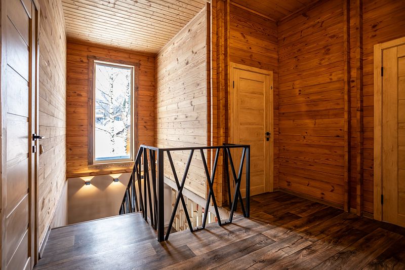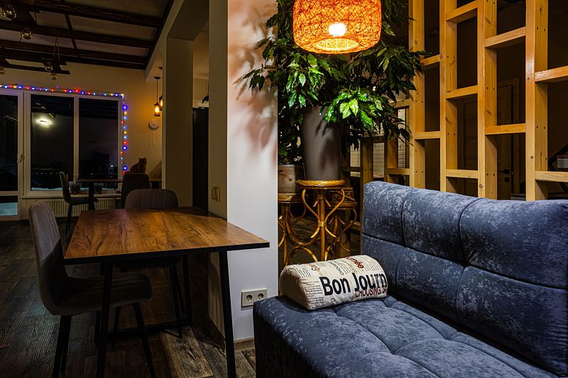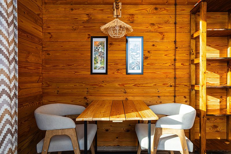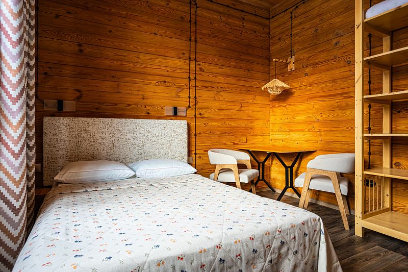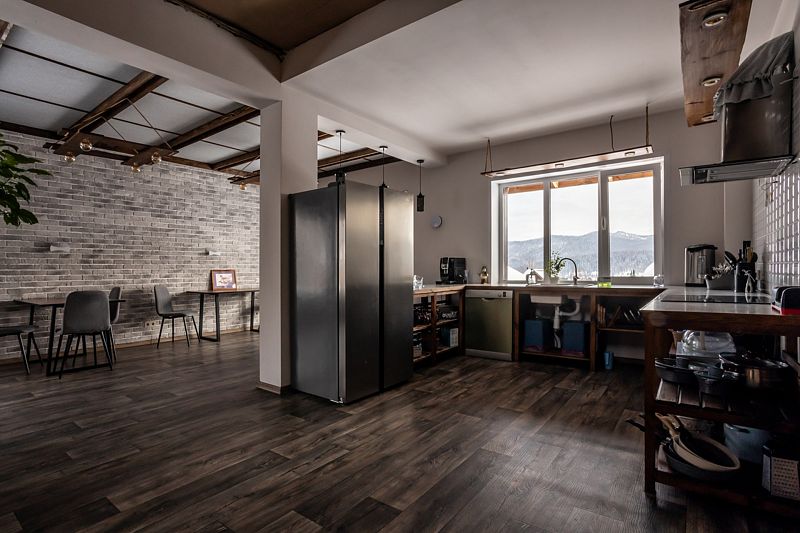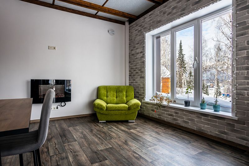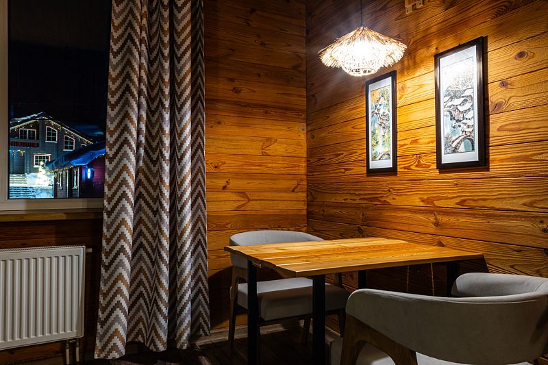 «Рыжий пони» — это уютный и очень теплый дом с собственной системой отопления. Первый этаж и санузлы оснащены подогреваемыми полами, а горячая вода подаётся в любое время суток. Также на первом этаже расположены просторная гостиная и кухня, выполненные в студийном стиле площадью 48 кв.м.. Здесь же и отдельная изолированная комната, где проживают хозяева.