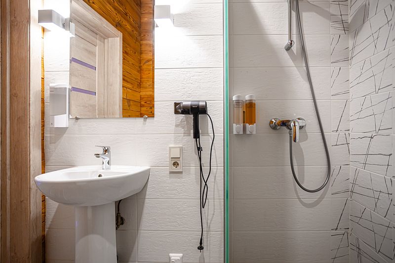 Также гости пользуются двумя туалетными комнатами с душем, гигиенические принадлежности входят в стоимость, есть фен.