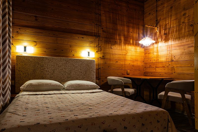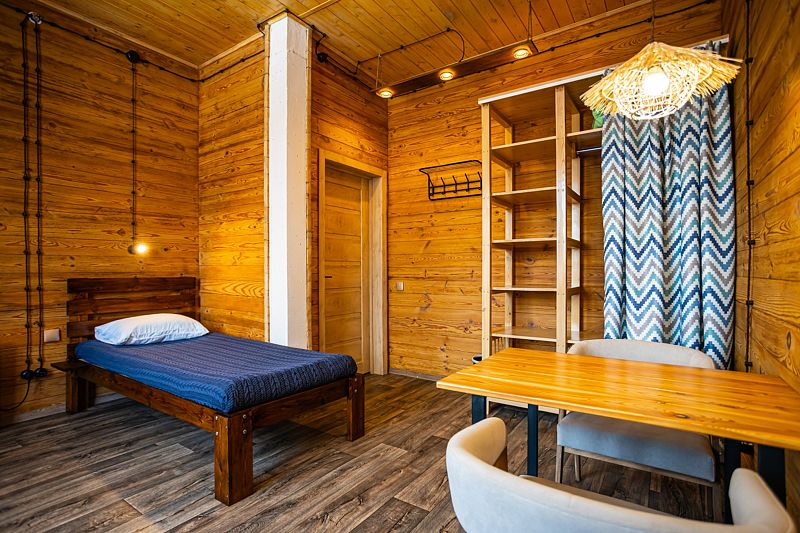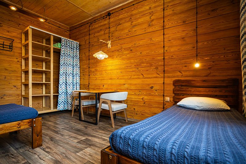 Гостевой дом рассчитан на 10 проживающих. Гости арендуют номера. Есть номера с двумя двуспальными или одной односпальной кроватью, можно оплатить дополнительное место в номере. Для гостей предусмотрено постельное бельё, полотенца.