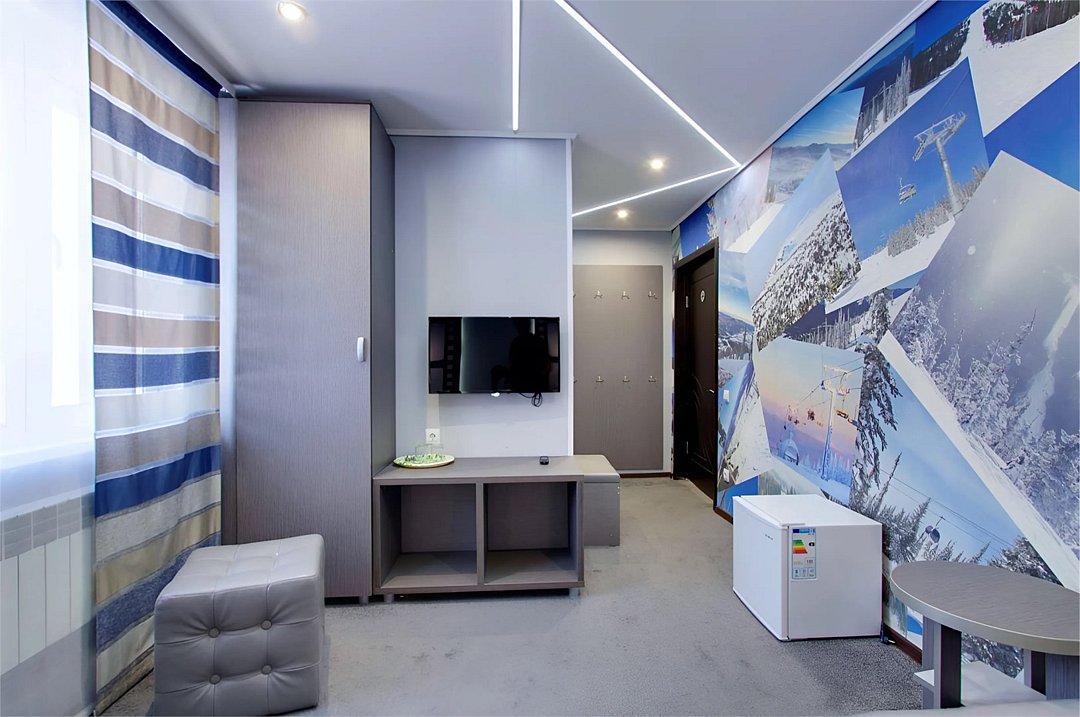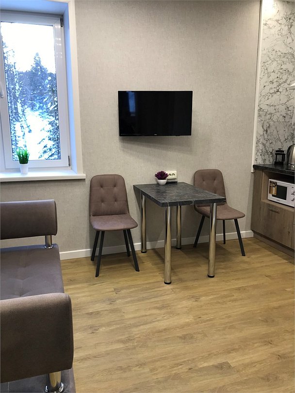 Однокомнатные двухместные апартаменты располагаются в живописной лесной зоне в непосредственной близости от горнолыжных трасс курорта. Номер находится на 2 этаже. Площадь 25 кв.м. Санузел 4 кв.м. Имеется кухонная зона для самостоятельного приготовления пищи.Услуги и удобства