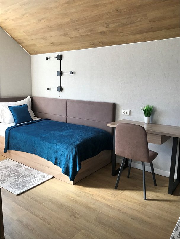 Площадь номера 16 кв.м. Санузел 3.5 кв.м. В номере имеется все необходимое для комфортного проживания.Услуги и удобства