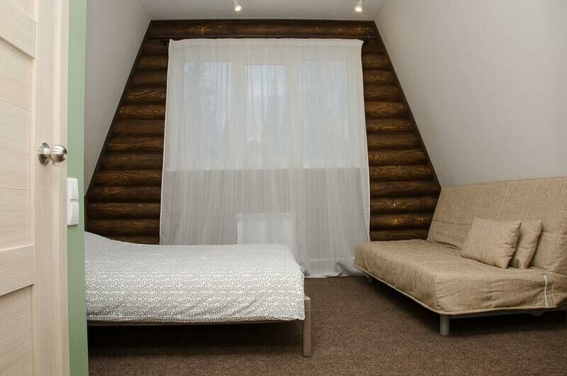 Небольшая сауна на первом этаже. Парная из липы оборудована современной финской дровяной печью. Посещение сауны — 2000 руб./сутки (предоставляются дрова и простыни), сауна топится гостями самостоятельно.