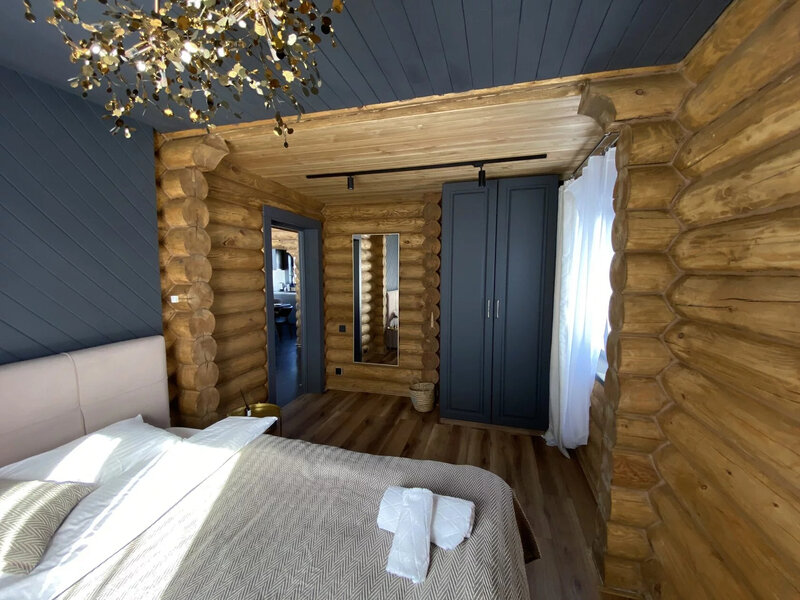 Для гостей предлагается стильный двухэтажный коттедж, который включает в свои удобства комфортные спальные места для отдыха, спутниковое телевидение и интернет, а также два санузла. Есть терраса, с которой можно любоваться красивым видом.