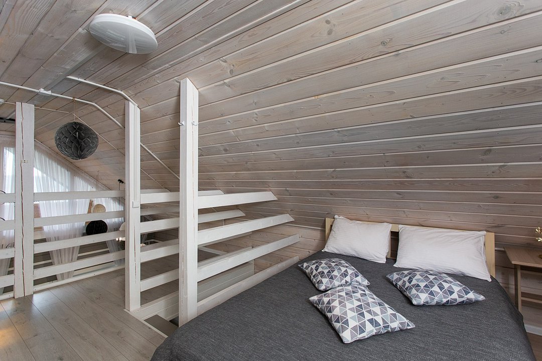 Современный дом с двойным светом, с видом на реку, большой террасой и вторым этажом! Дом на восемь человек.