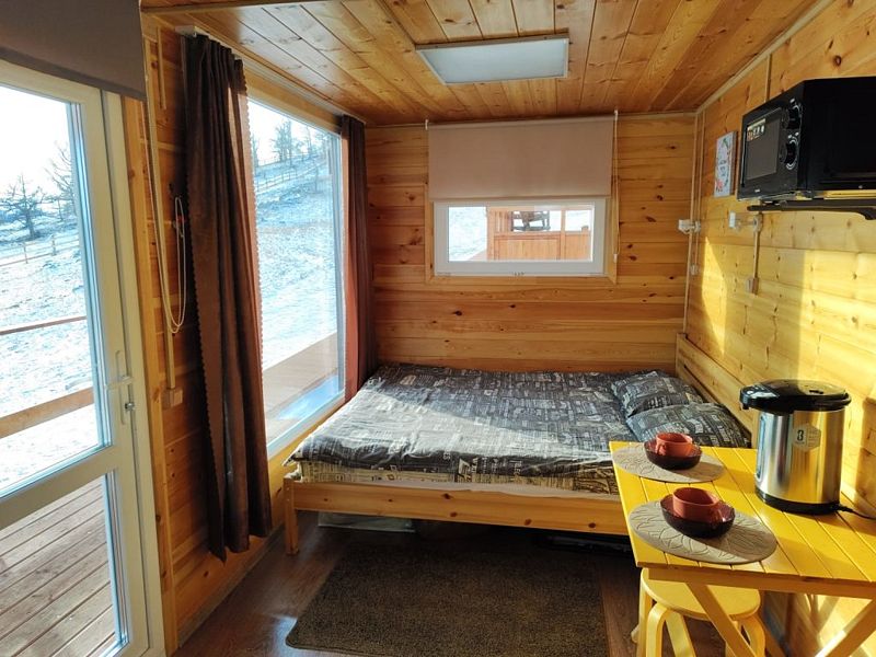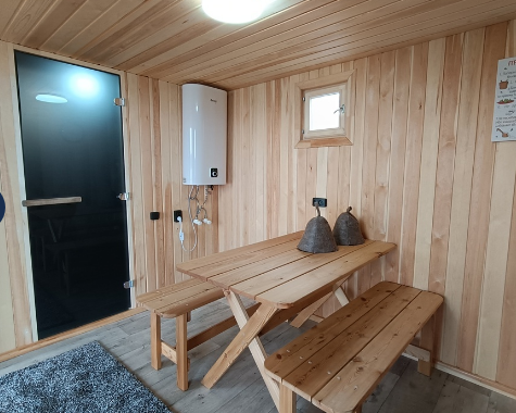 На территории глэмпинга можно заказать современную русскую баню. С парной открывается панорамный вид на залив. Вместимость рассчитана до 6 человек. Каждый гость обеспечивается полотенцем.