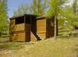 В нем одна комната с 4 кроватями и мебель, необходимая для вещей, зеркало. С небольшой веранды открывается превосходный вид на залив. На веранде стол, стулья и полки для посуды.