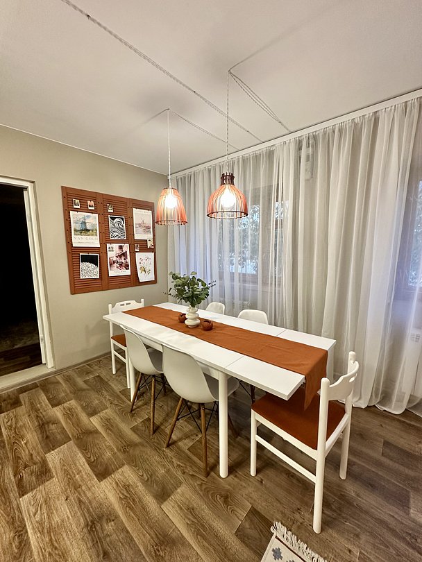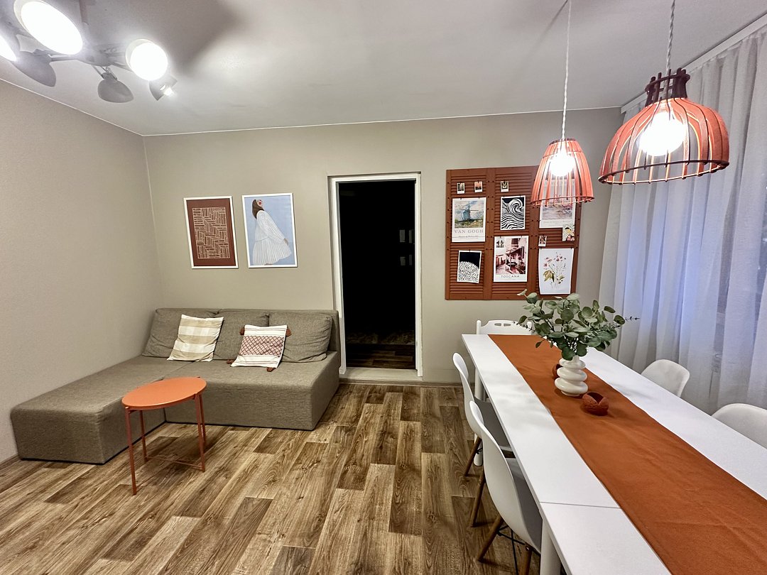 Современный комфорт: Дом полностью обновлен. Вас ждут просторная гостиная-кухня, уютные спальни и всё необходимое для комфортного проживания.