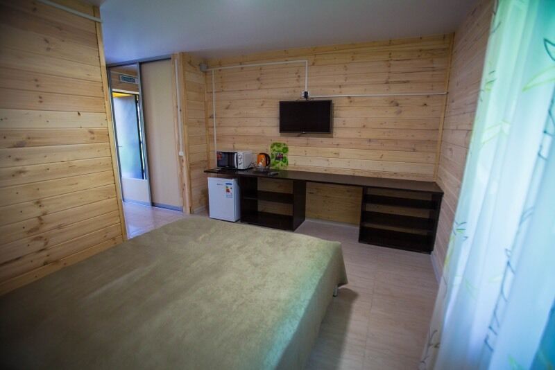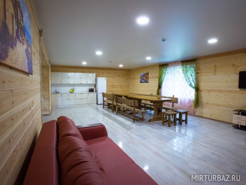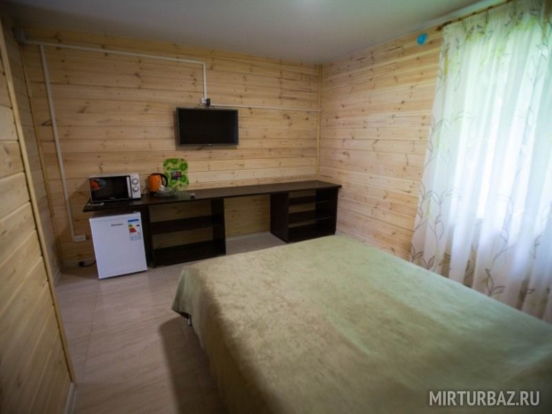 Семейный отдыхДостоинстваВ гостевых домиках уютная обстановка, есть телевизор, холодильник, на кухне микроволновка, в которой можно разогреть пищу. Хорошая природа, можно сходить на реку и пожарить шашлыки на мангале, поплавать в бассейне. В бассейне оборудована отдельная зона для маленьких детей, это очень удобно для родителей.