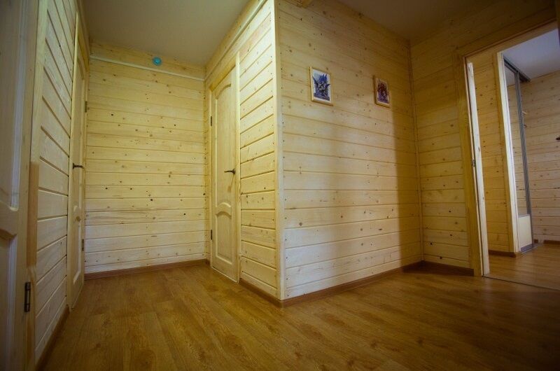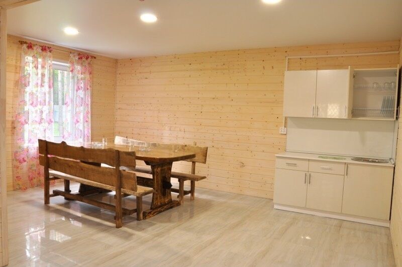 В доме, две изолированные спальни, кухня – гостиная, санузел.