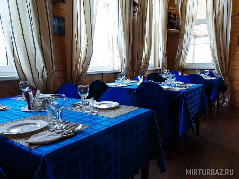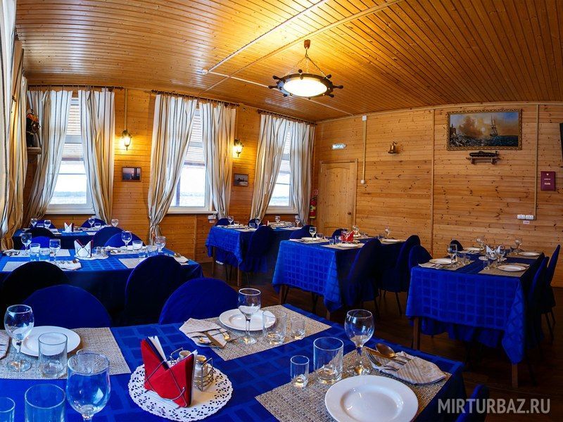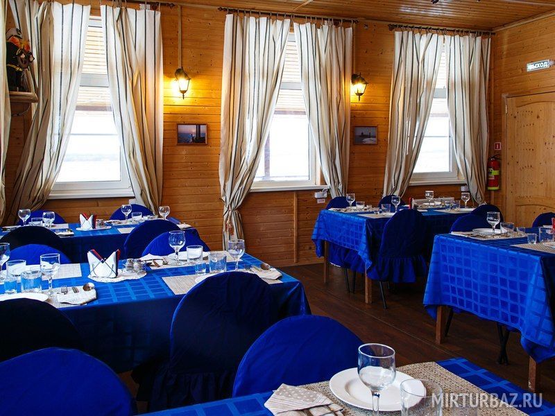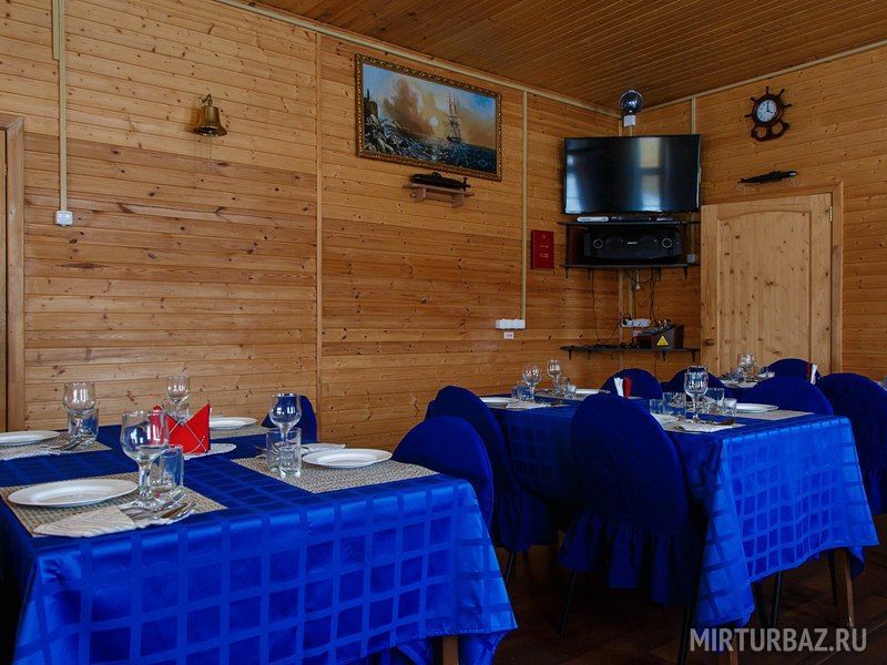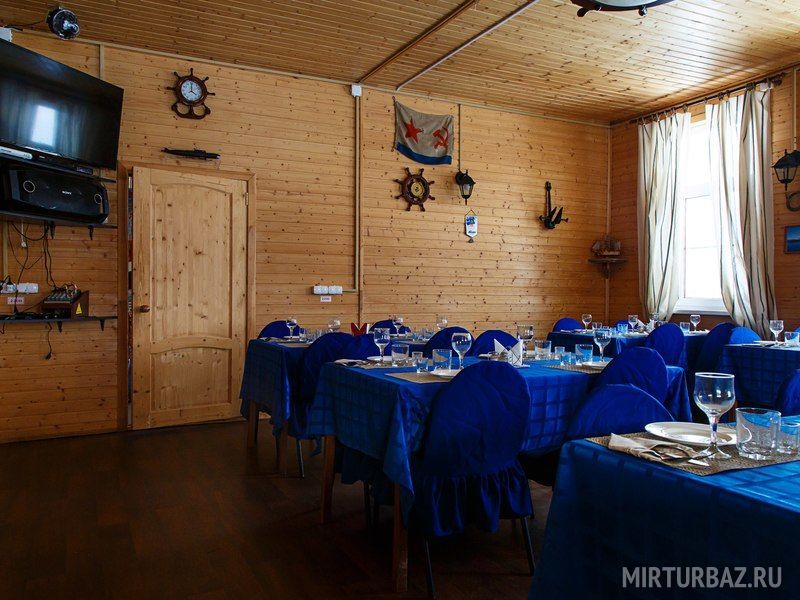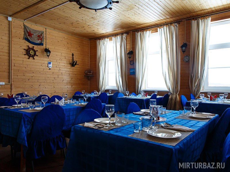 На территории базы отдыха работает кафе, где можно полноценно питаться утром, днем и вечером. Кафе работает только для постояльцев базы отдыха. Здесь вы можете поесть по-семейному, как на вашей собственной кухне, местный кок приготовит вам вкусные домашние блюда. А если хотите устроить шумную вечеринку с друзьями — в кают-компании это тоже возможно. Вместимость до 30 человек.