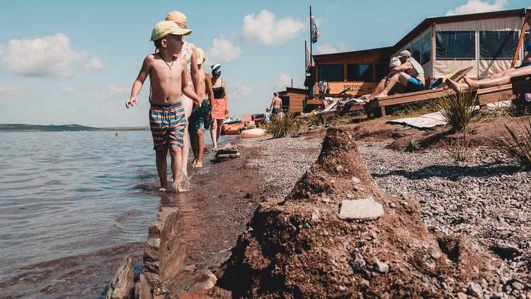 Пологий спуск в воду и соленая вода помогут научиться плавать тем, кто неуверенно чувствует себя в воде.