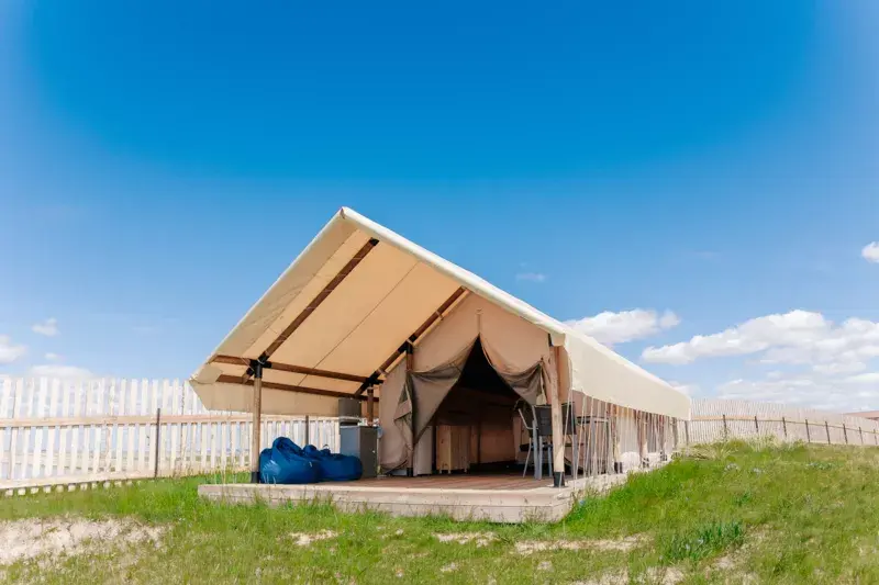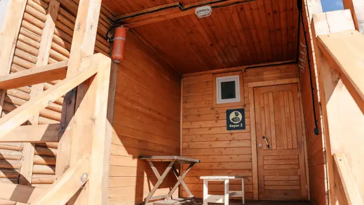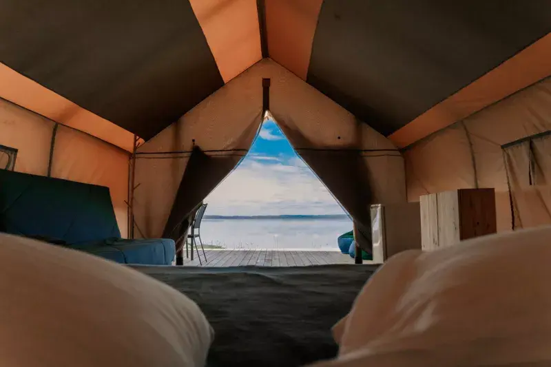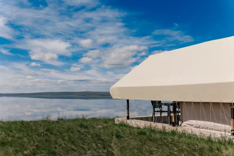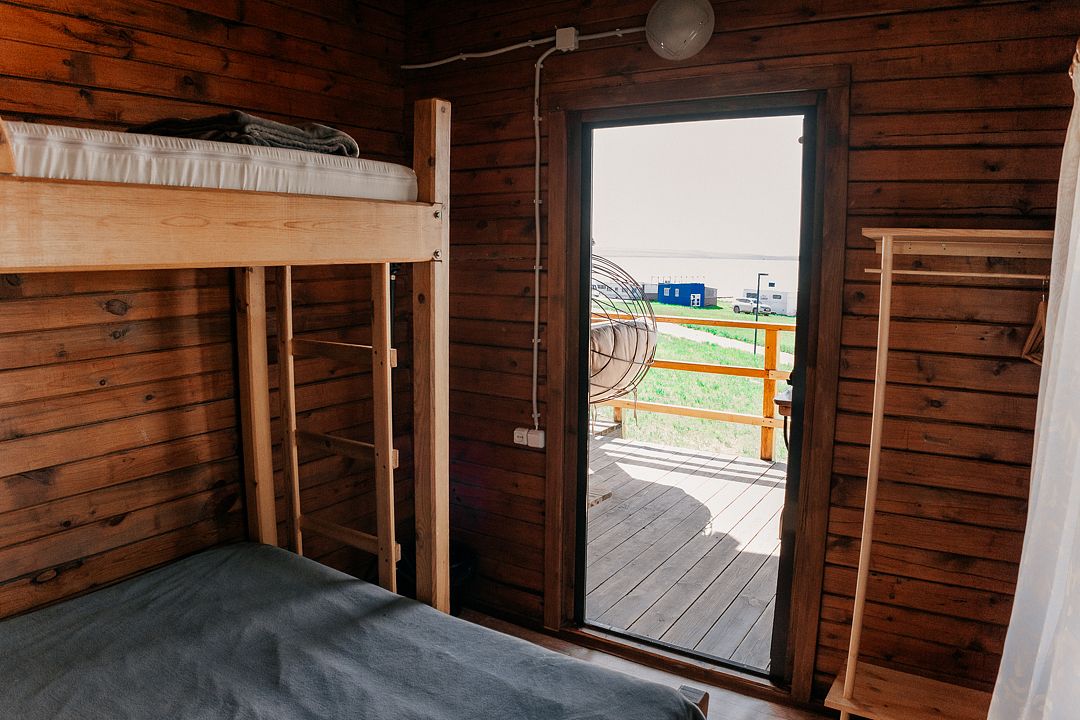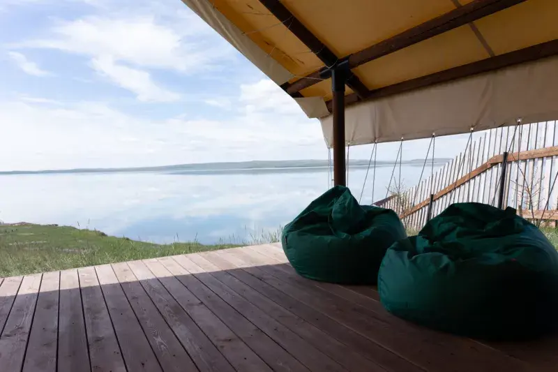 Глэмпинг расположен на возвышенности в 50 метрах от берега.