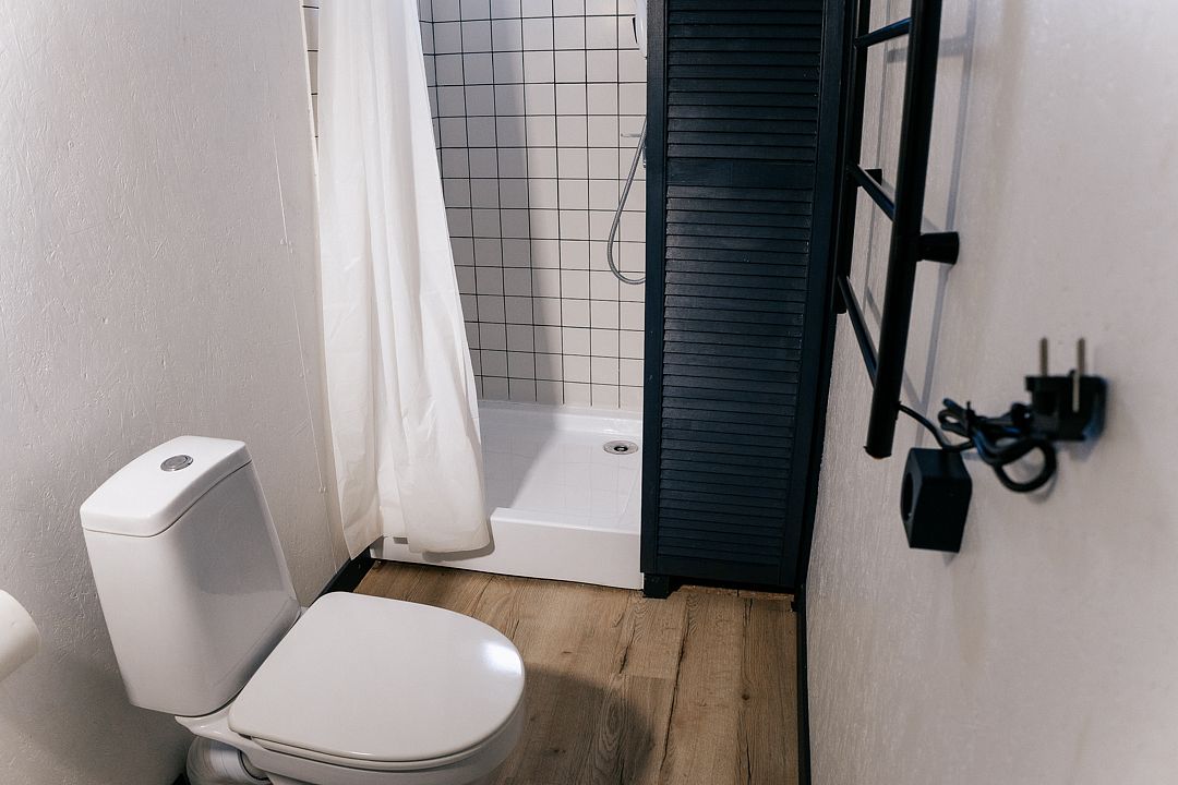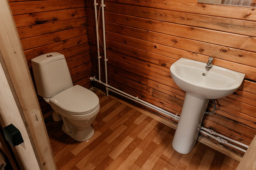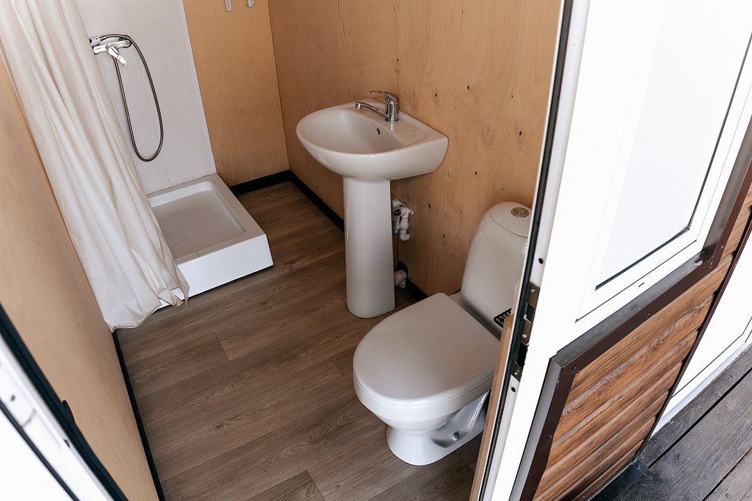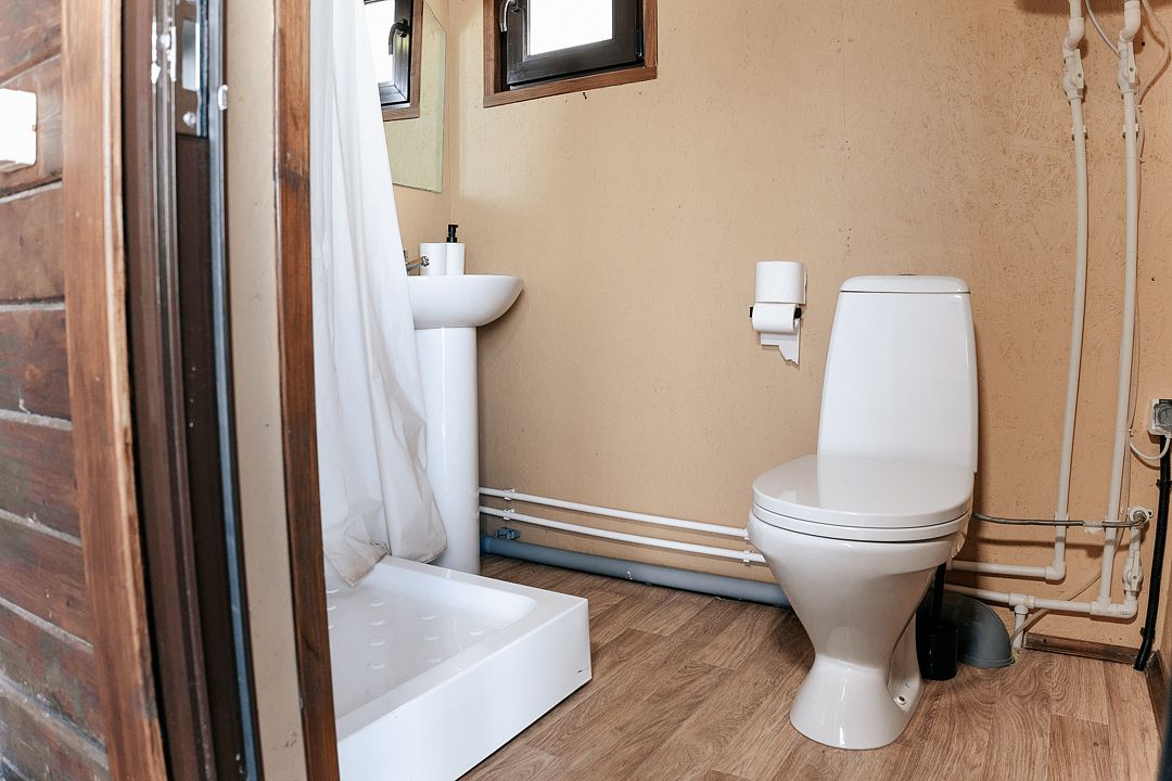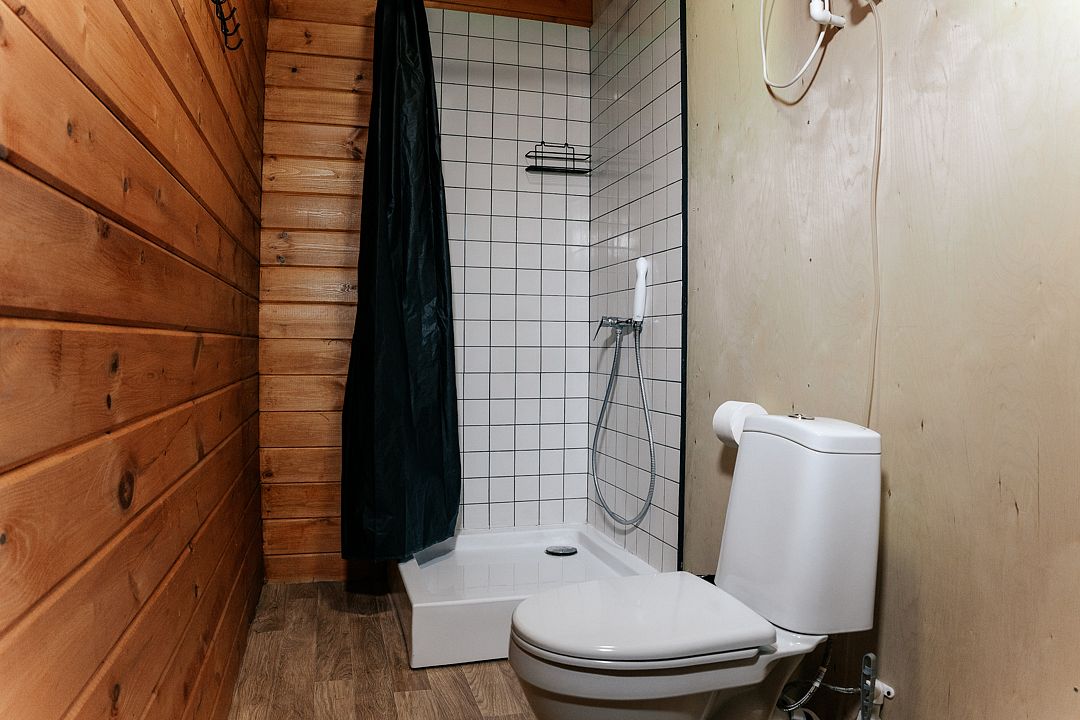 Домик относится к категории повышенной комфортности. Внутри оборудован санузел: туалет и горячий душ.