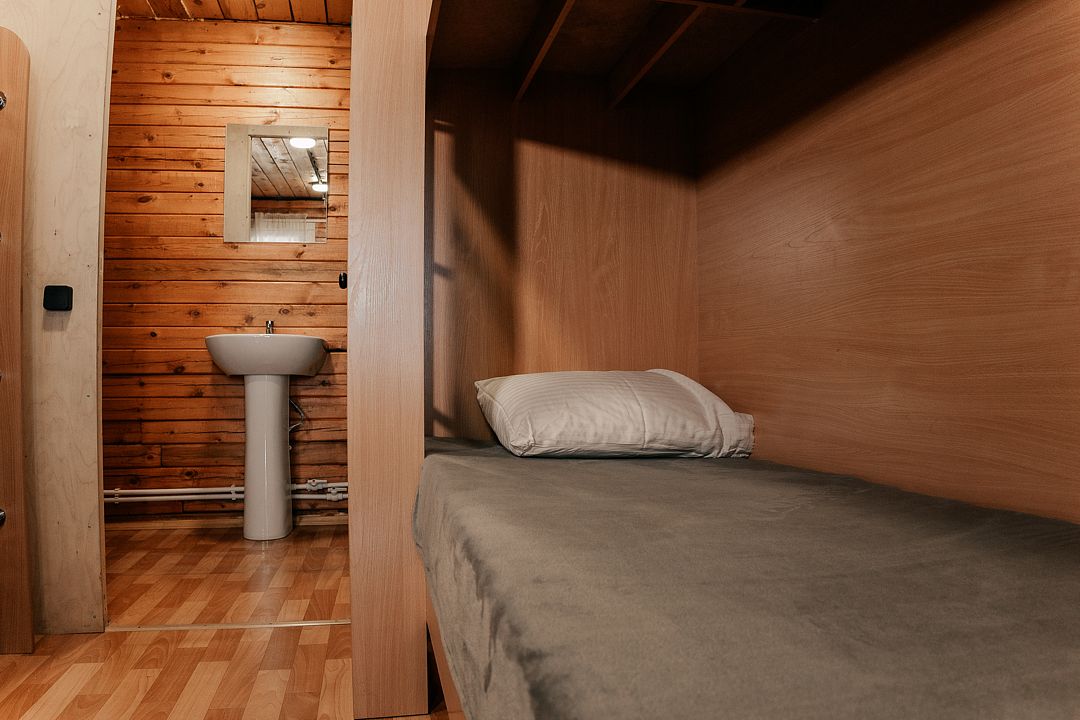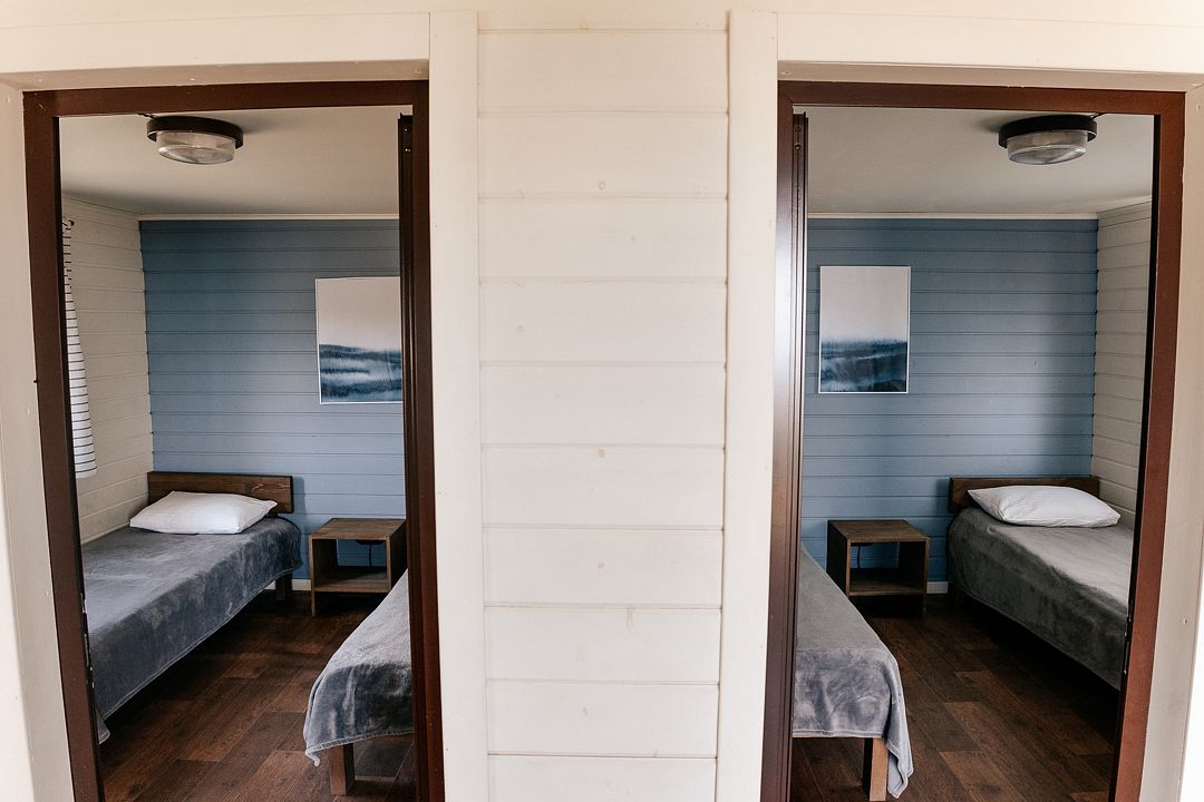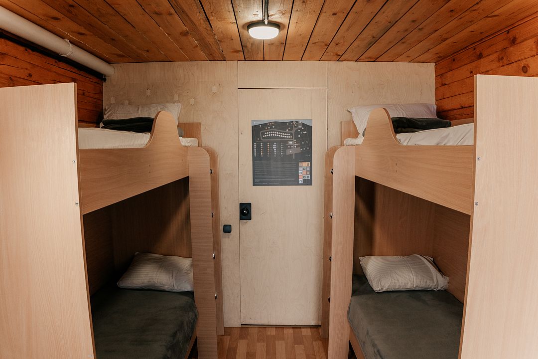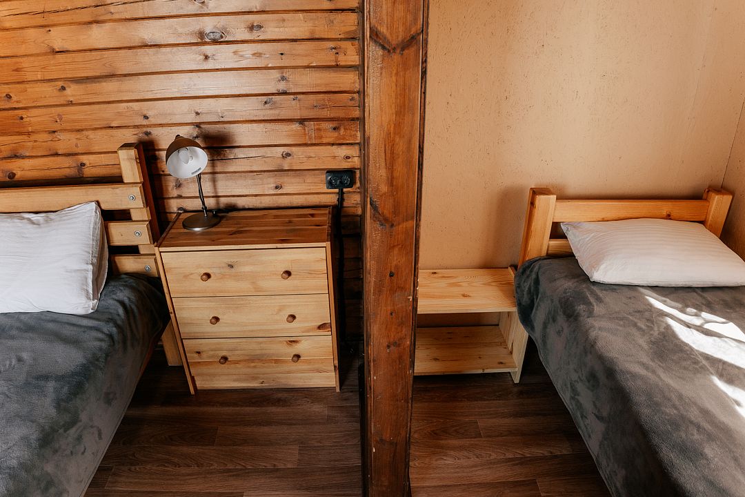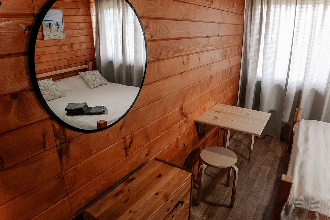 Номера расположены на первом этаже гостиничного корпуса. В номере стоят две двухъярусные кровати. В комнатах есть тумбочки, зеркало, чайник и мини-холодильник.
