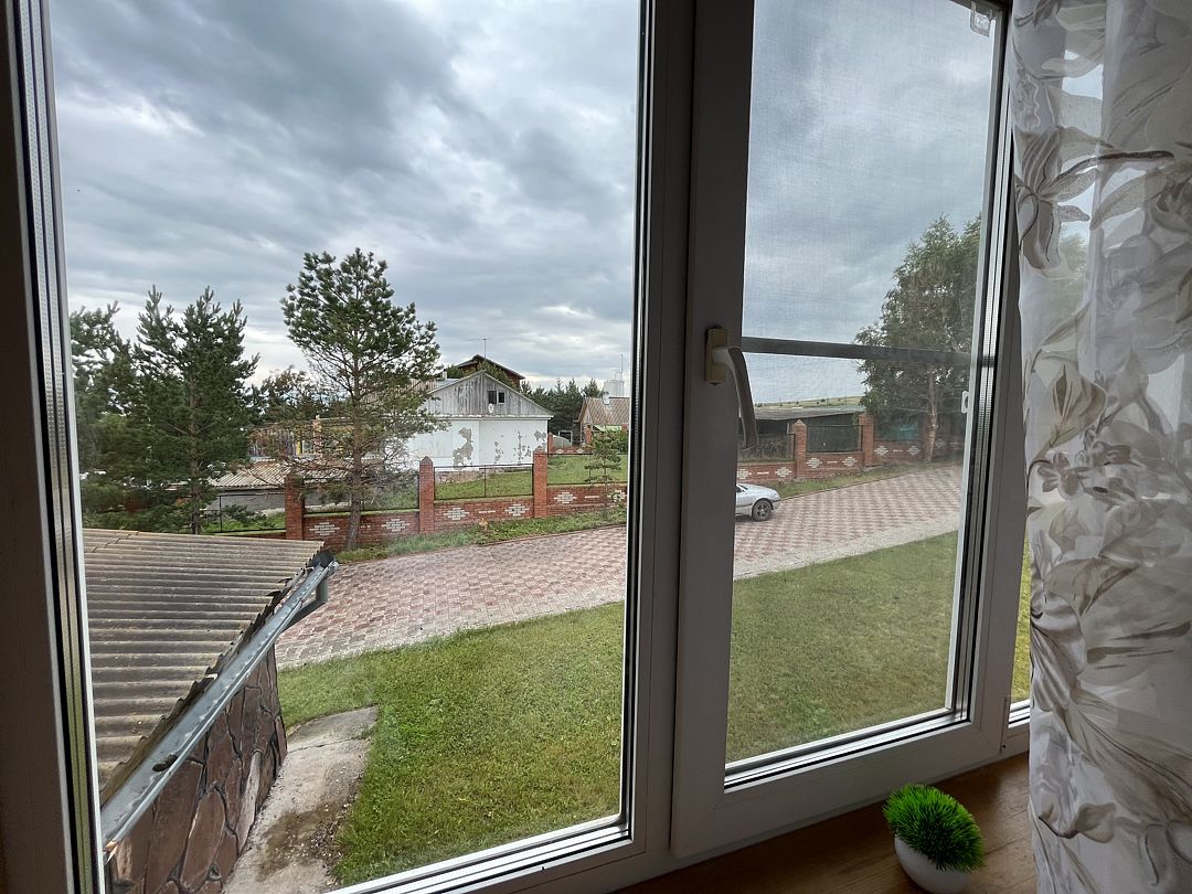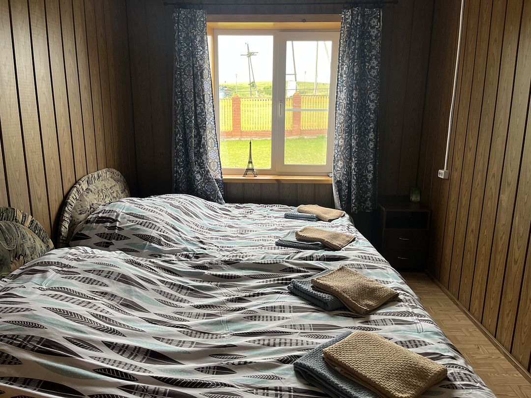 В номере находится одна двуспальная кровать. Рядом с номером расположен туалет и душевая. Окно на внутреннюю часть дома (кухня, гостиная)