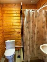 Внутреннее оснащение минимальное. Кровати сносные, пледы обычные шерстяные в клеточку старые, тумбочки как в больницах, один шкаф и тот без полок. Стоял качался - никому не пришло в голову подложить ему хотя бы что-то под ножку. Посуда пластиковая, стаканы тоже, причем без ручек - чай пить неудобно, вилки алюминиевые. В ванной ничего кроме туалетной бумаги, даже мыла нет. Крючки свисают на одном гвозде из двух нужных. Было так холодно, что в душ не рискнули соваться. Полотенца выдают только для рук - очень маленькие.