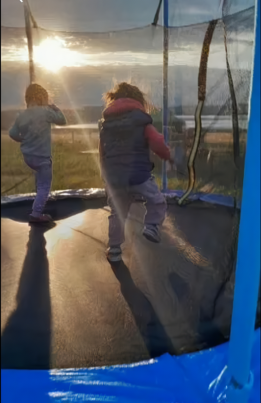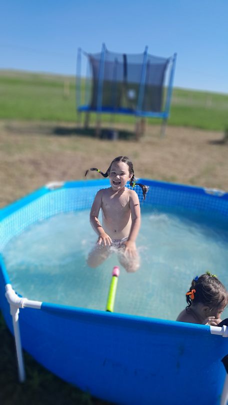 На территории есть детская площадка с качелями и горкой, большой батут, два бассейна и телевизор.