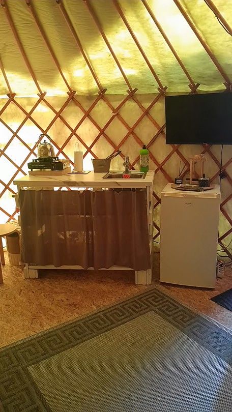 Благодарим за ваш отзыв. Чайники у нас для газовых плиток, т к электричество здесь часто отключают. это касается и микроволновки, наша боль, их отсутствие, но мы развиваемся, и учтём пожелания. Таулет можно поставить и в юрту, но насколько это удобно? Про полочки - в процессе) спасибо, что поделились