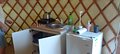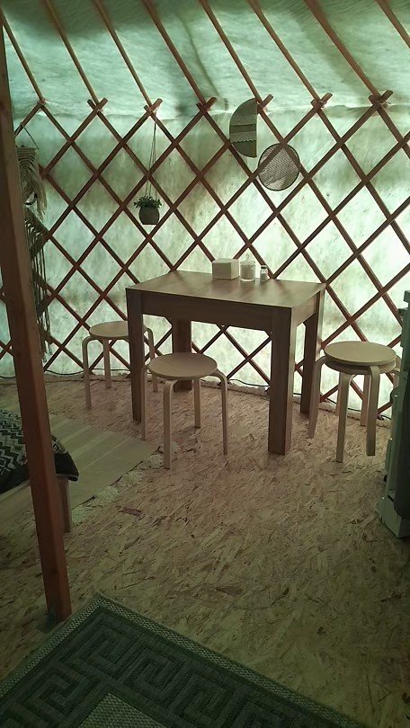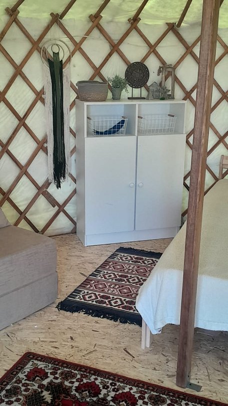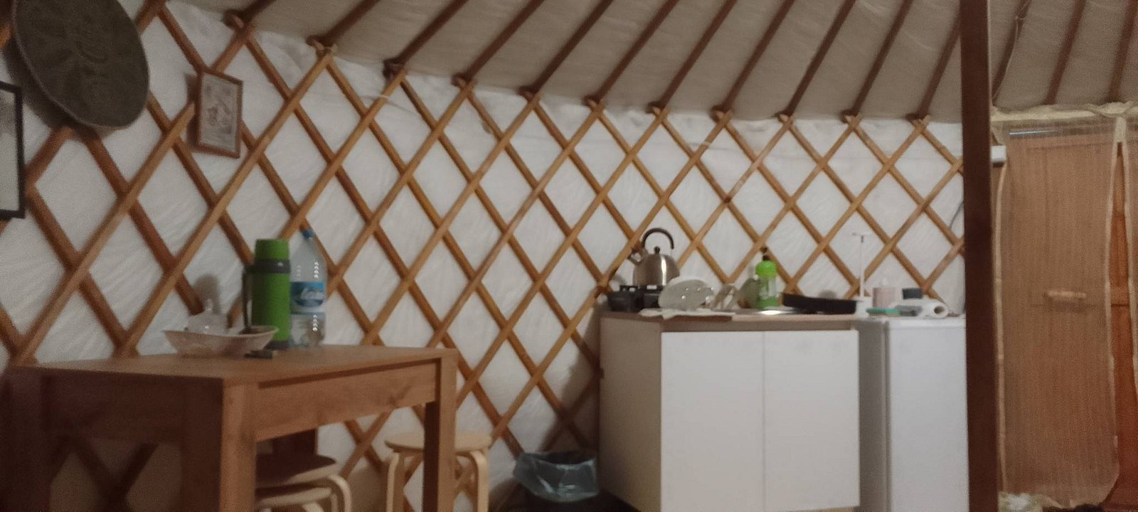 НедостаткиОтсутствует микроволновка и эл.чайник. Не хватает места в шкафчике. Девочкам некуда будет поставить бутылочки с кремами и косметику, нет тумбочкии,маленькие зеркала. Беседка не защищена москитной сеткой. Туалет это отдельное помещение, находится вне юрты. В шаговой доступности, но если на улице дождь можно промокнуть.