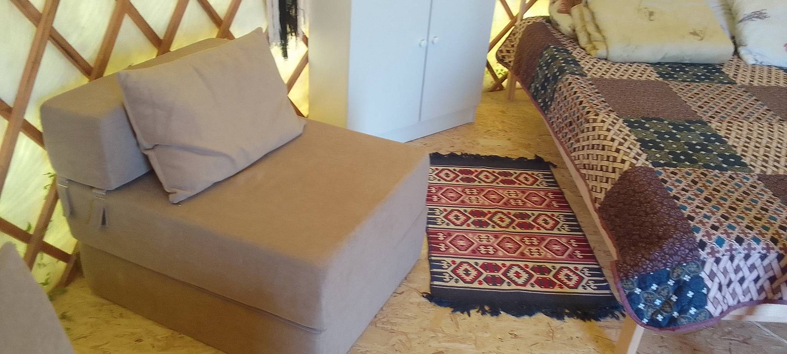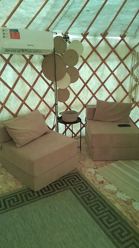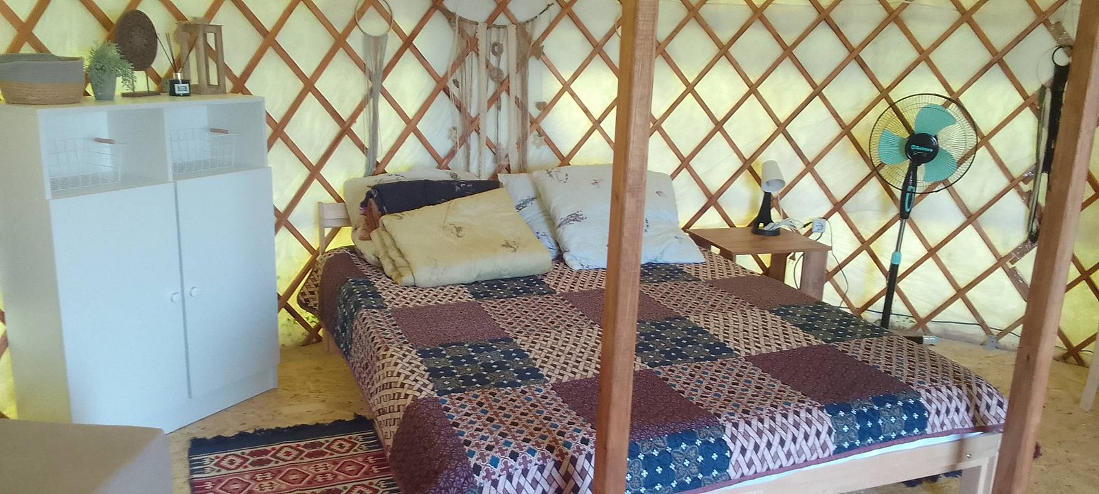 Уютная юрта со своей кухней и набором посуды. Постельное белье, банные и пляжные полотенца, циновки для пляжа. В номере чай, кофе, сахар. Шампунь, гель для душа, средство для мытья посуды. Смарт-тв и кондиционер. Москитная сетка, фумигатор. Питьевая вода 3 л в сутки на юрту.