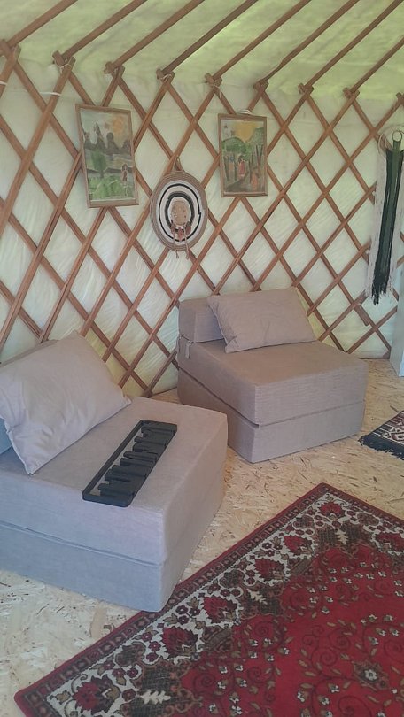 Юрта с удобствами на улице. Гости могут пользоваться всеми локациями на территории.